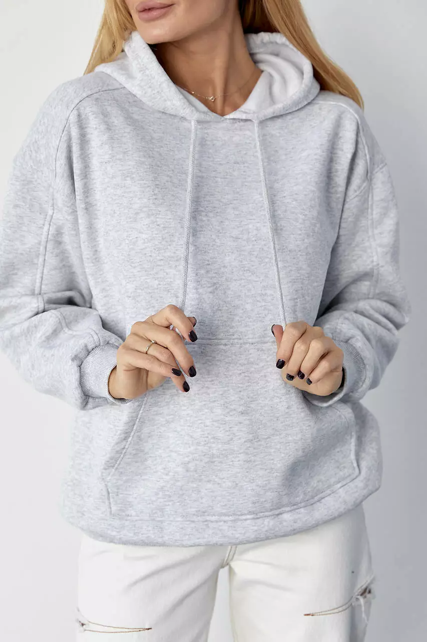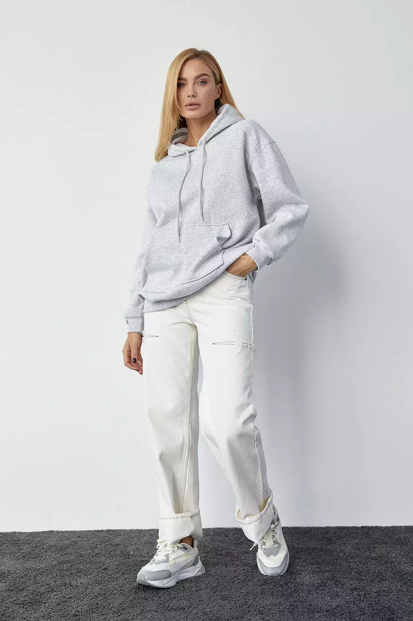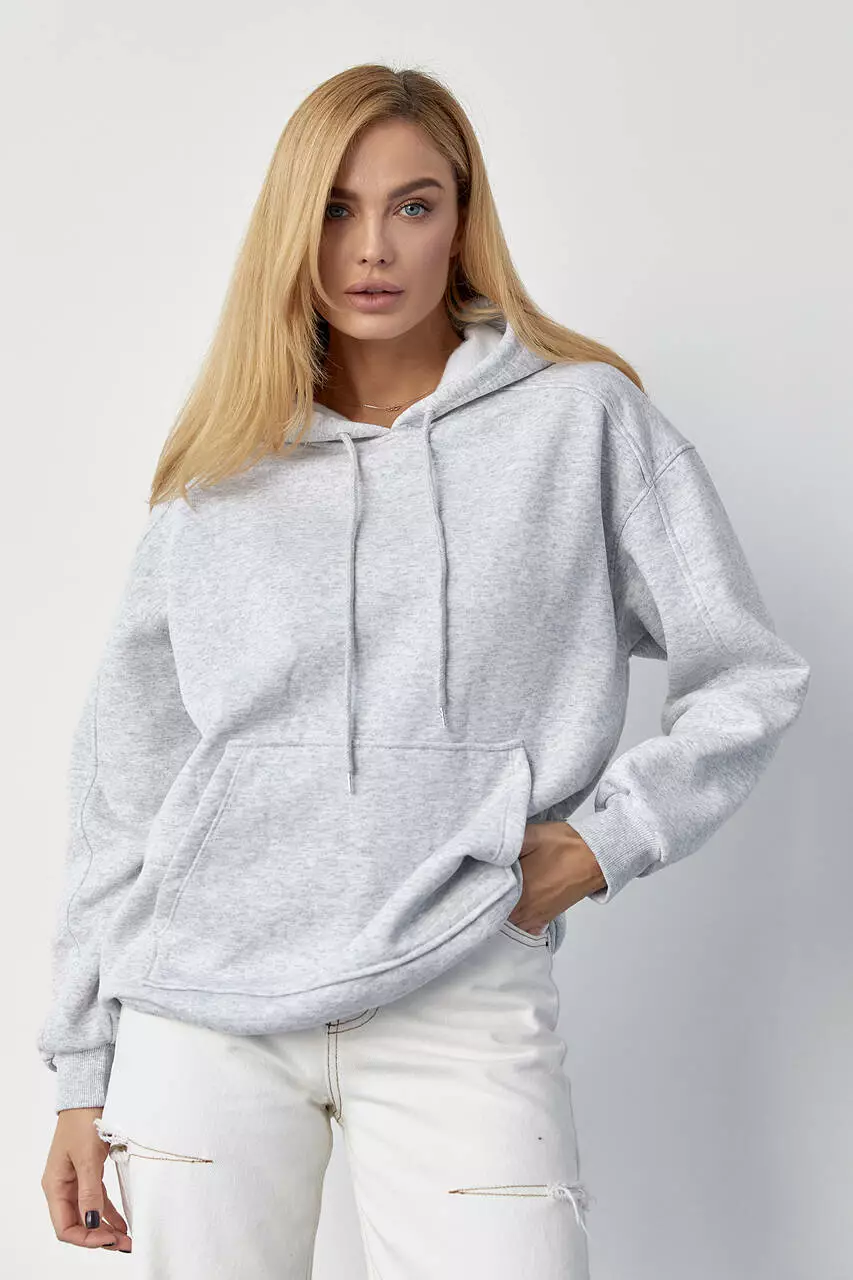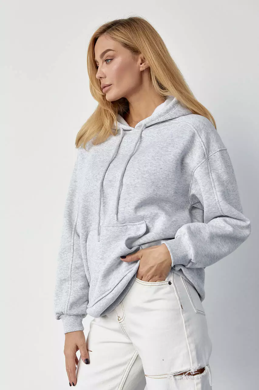 Эта модель с начесом выполнена в стиле оверсайз с опущенной
