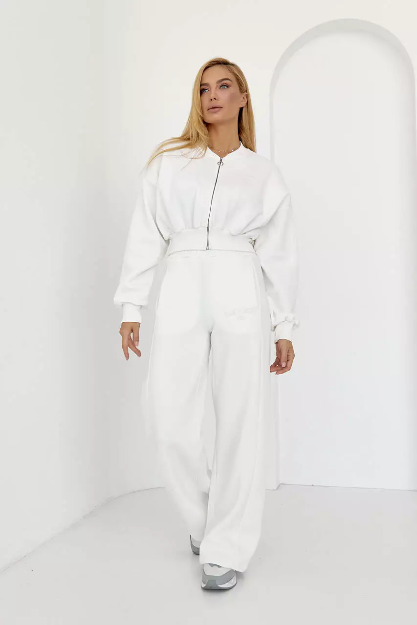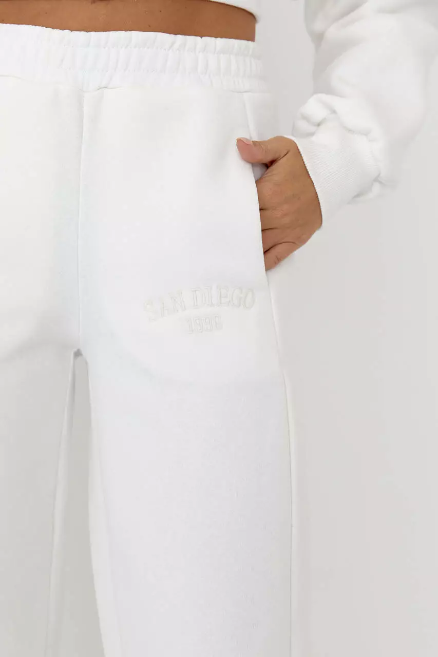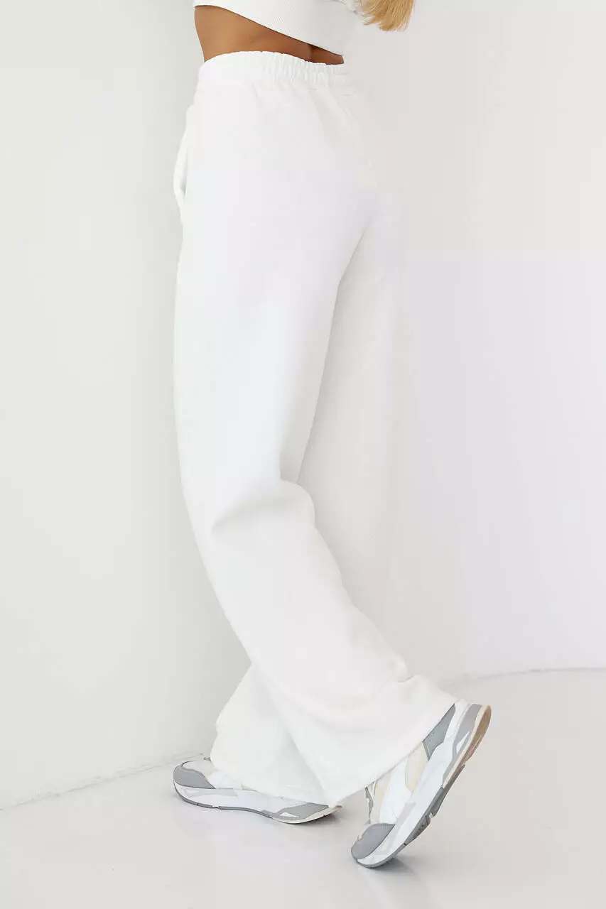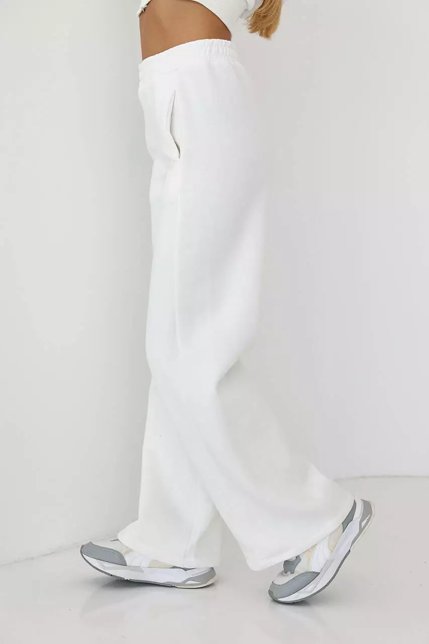 Утепленные трикотажные штаны с карманами - молочный цвет, M (есть размеры)