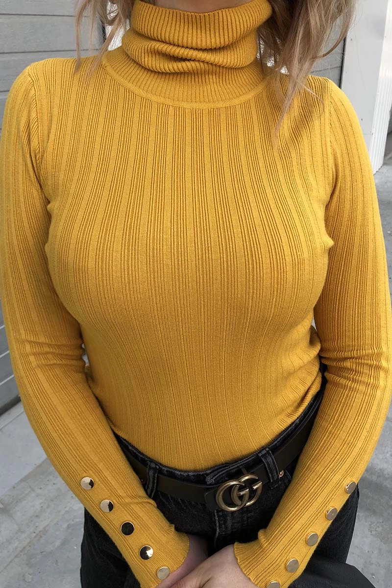Vinceotto Эластичная водолазка с металлическими заклепками на рукавах - желтый цвет, S