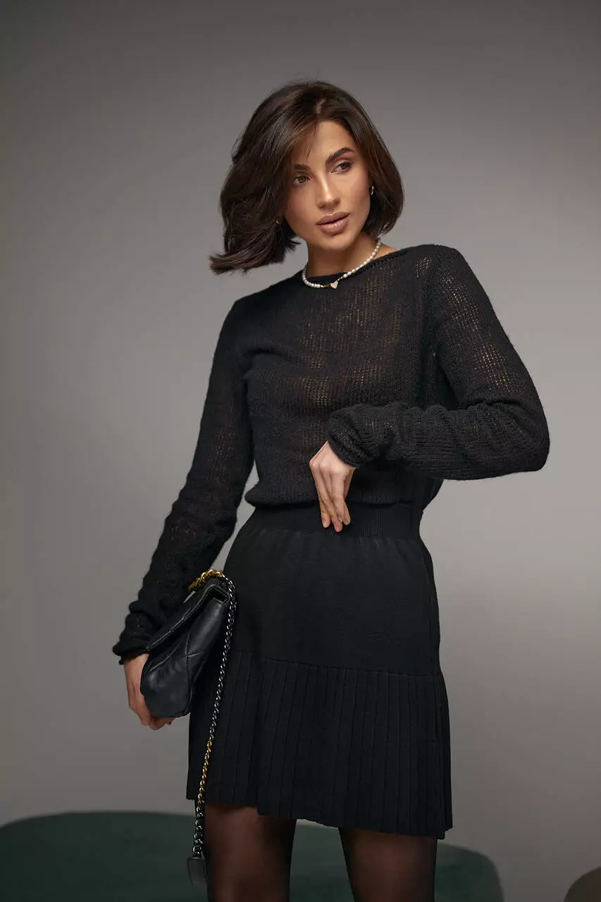 внизу. Нижняя часть изделия выполнена из машинной вязки с имитацией