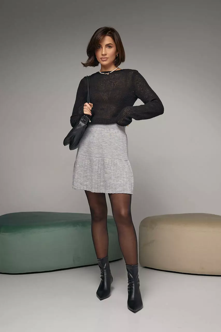 внизу. Нижняя часть изделия выполнена из машинной вязки с имитацией