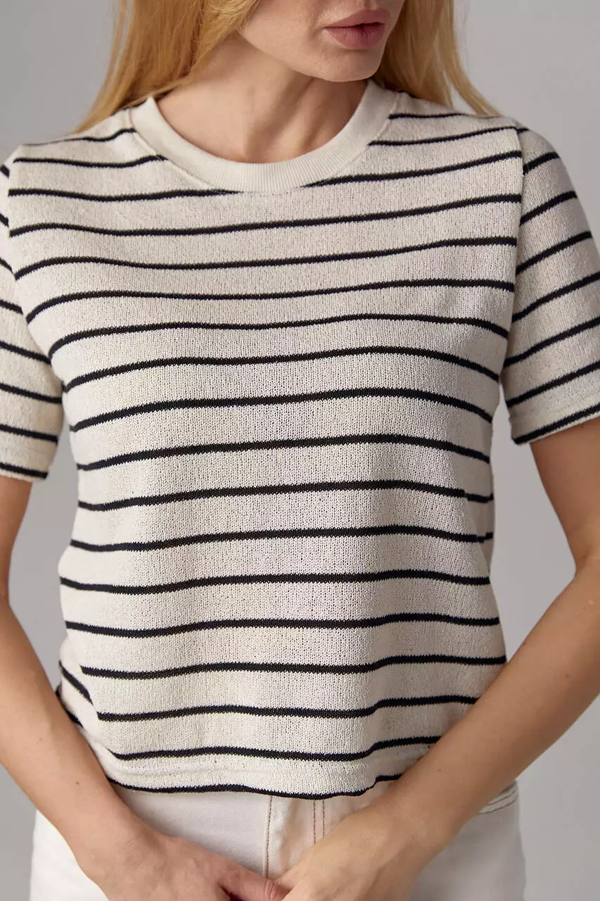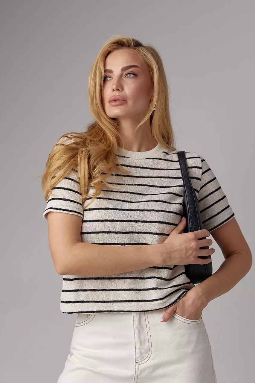 С такой укороченной вязаной футболкой ты можешь сочетать и