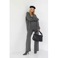 Ультрауютный трикотажный костюм из широких штанов и джемпера имеет оверсайзный крой и расслабленный силуэт. Это идеальная вещь для рабочих будней, путешествий или активных выходных, когда комфорт и свобода движений приоритетны.
