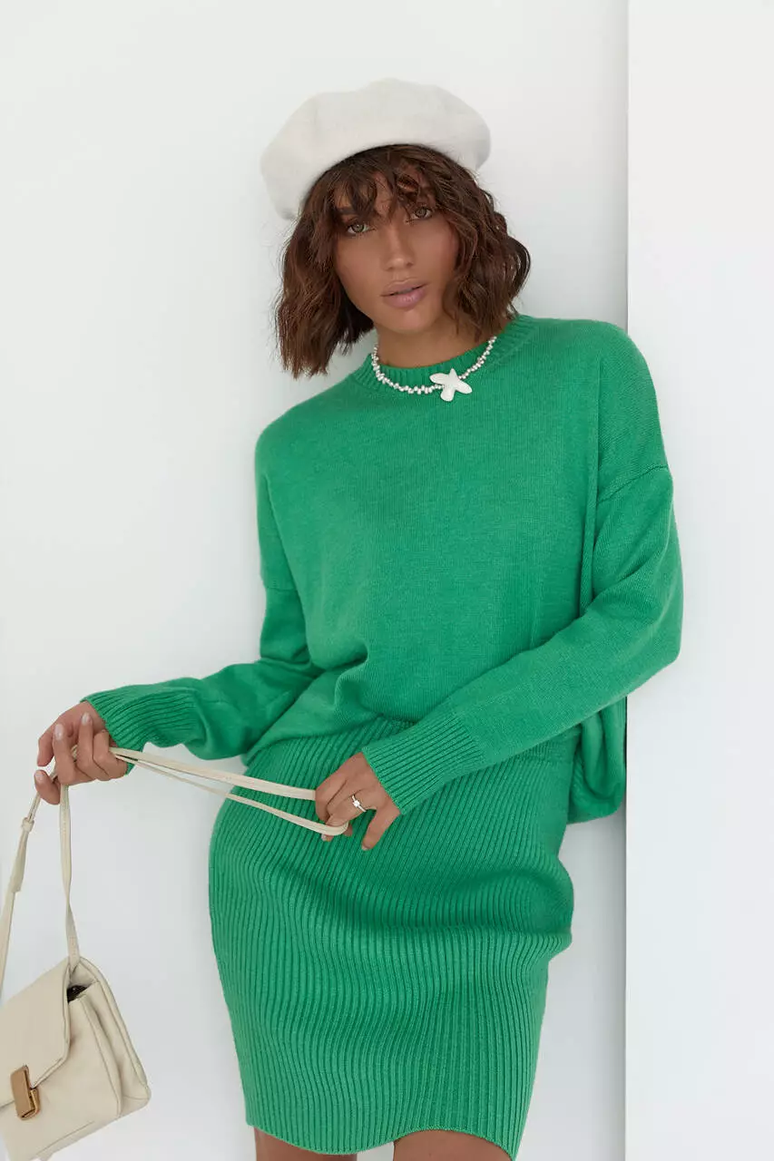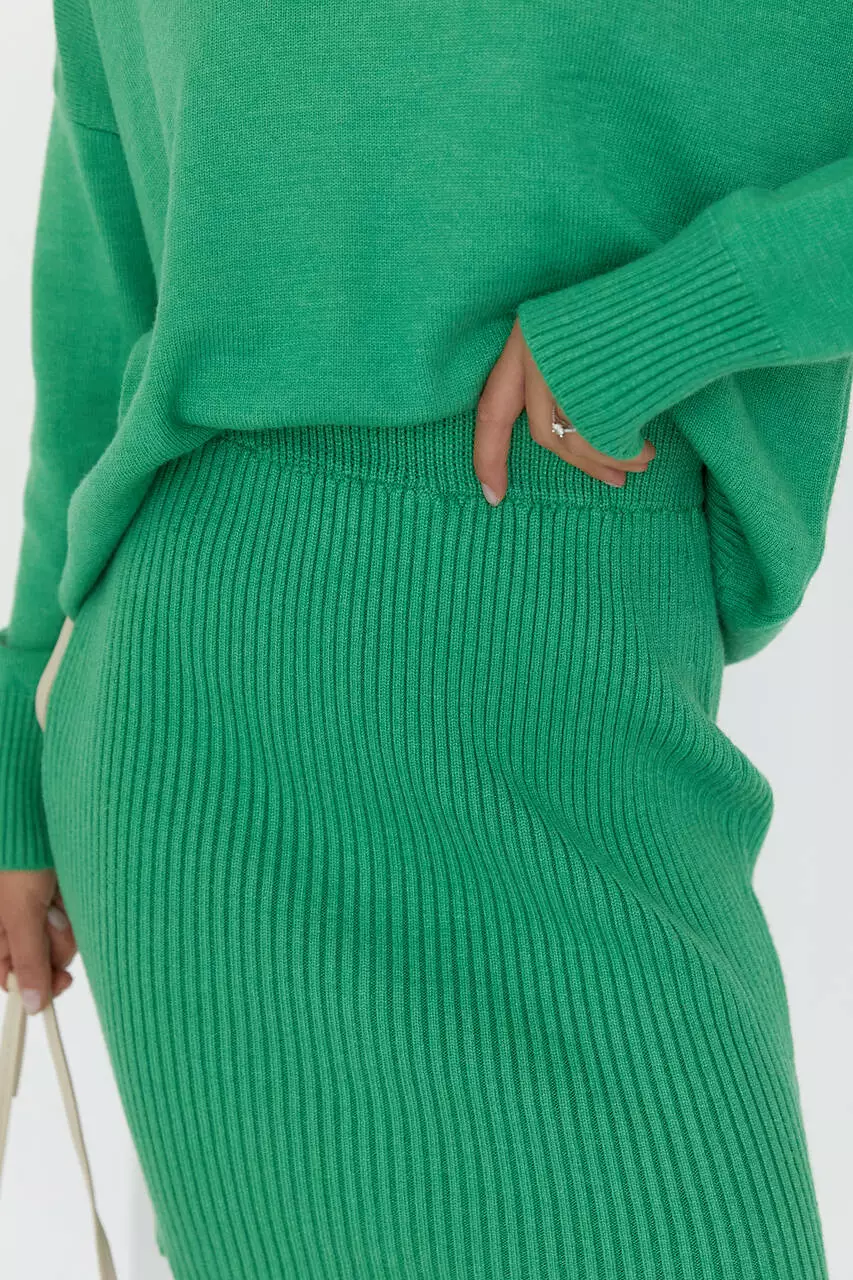 Вязаный костюм с юбкой-карандаш и джемпером - зеленый цвет, L (есть размеры)