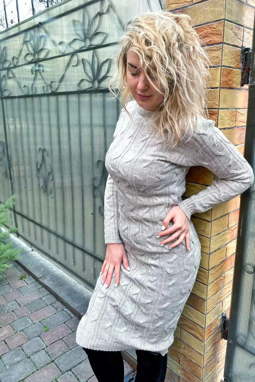 Вязанное платье длины миди с красивой объемной вязкой - кофейный цвет, S
