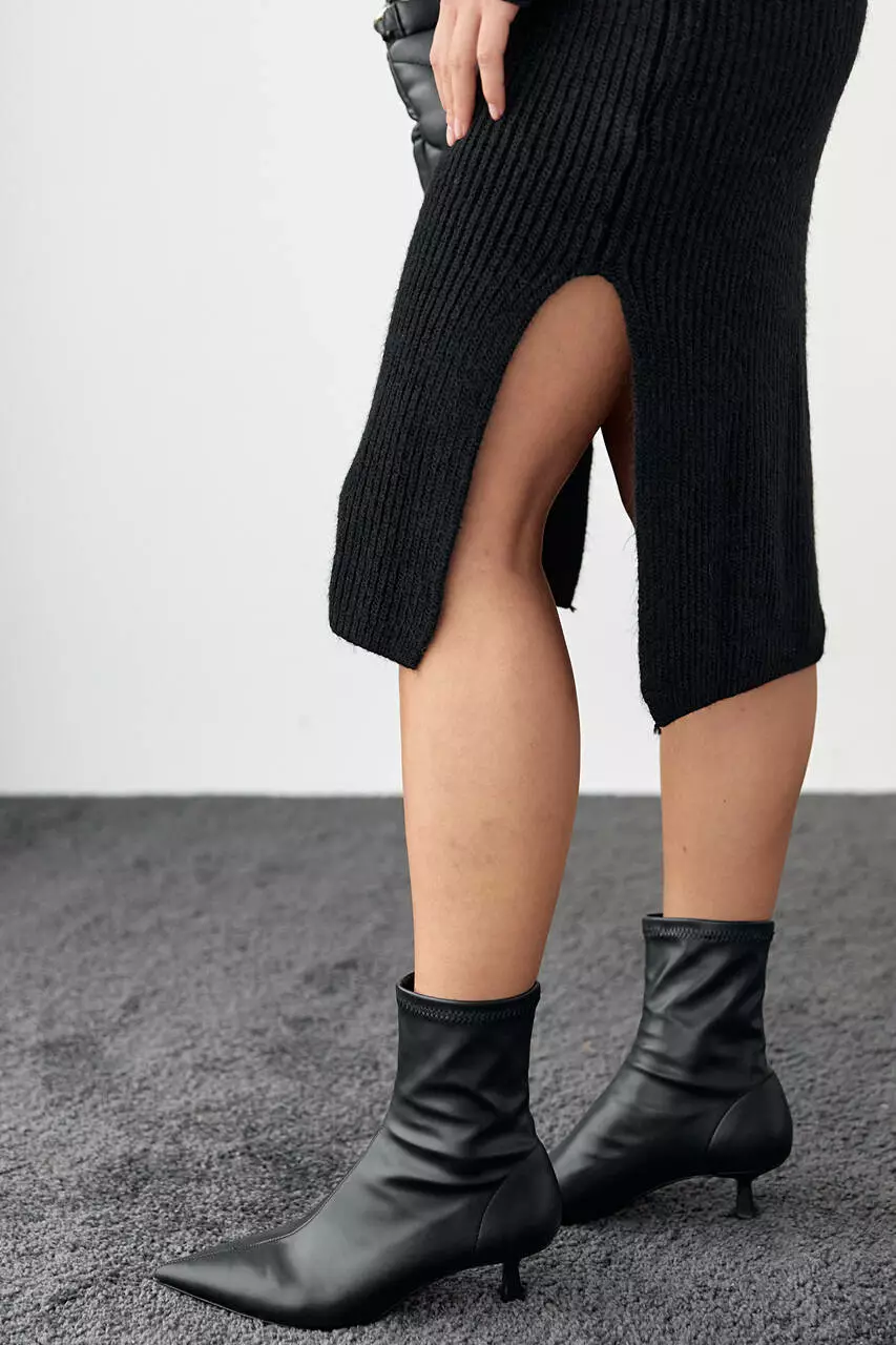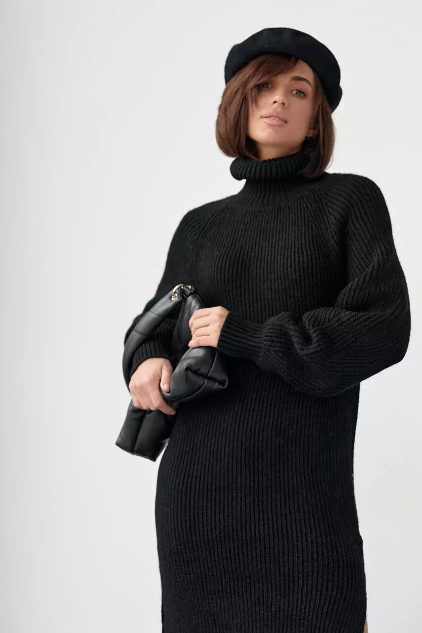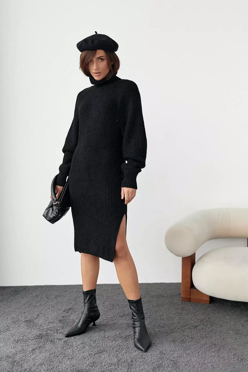 Вязаное платье миди с разрезами - черный цвет, L (есть размеры)