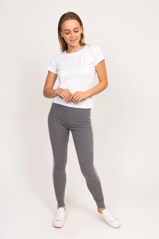 Женские лосины – отличный вариант на каждый день. Украшены полосками по бокам изделия.