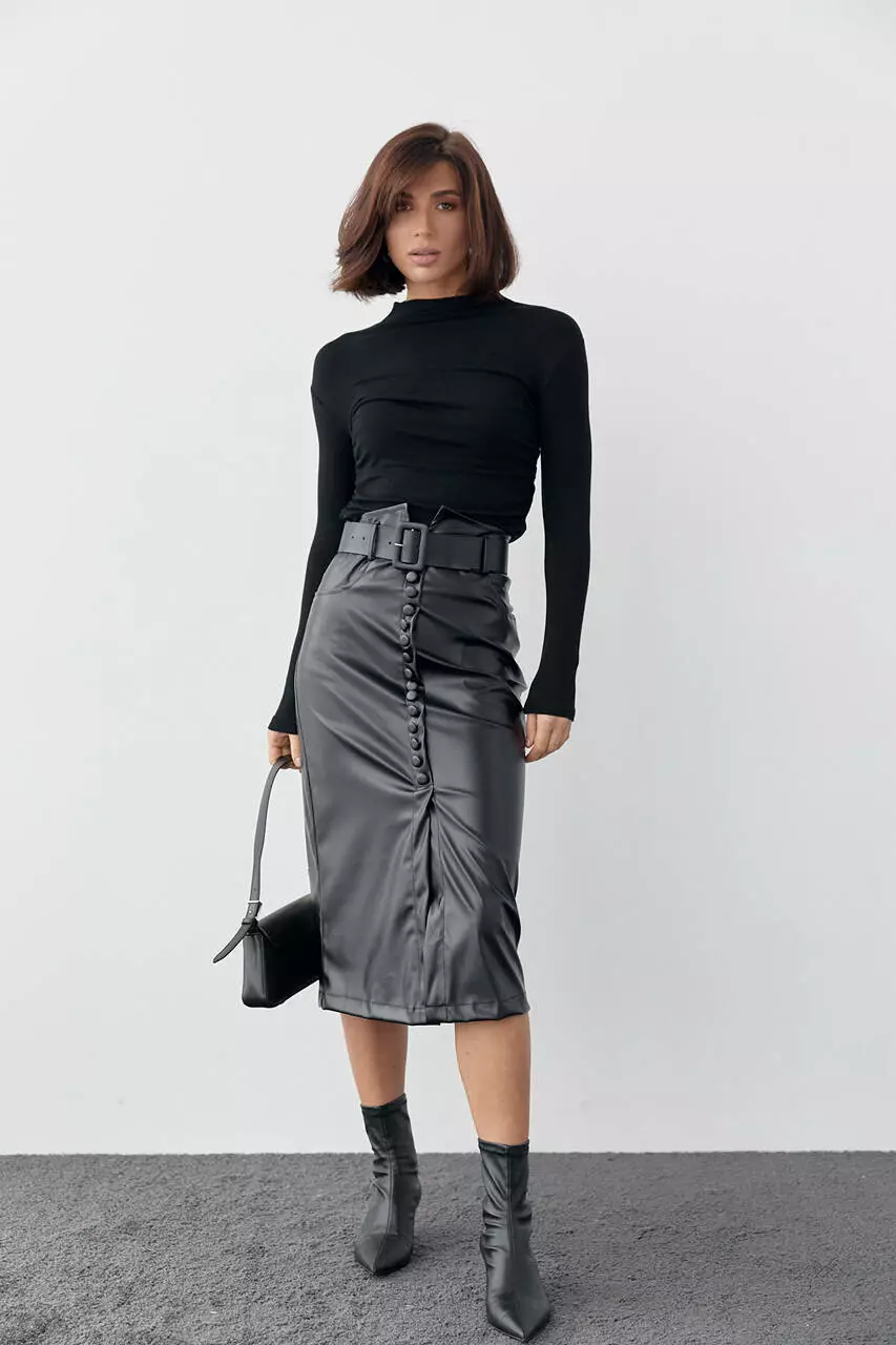 Хочешь добавить немного шика привычным образам – выбирай вместо классической юбки модель из кожзама. Ее необычная текстура станет главным акцентов в любом наряде.