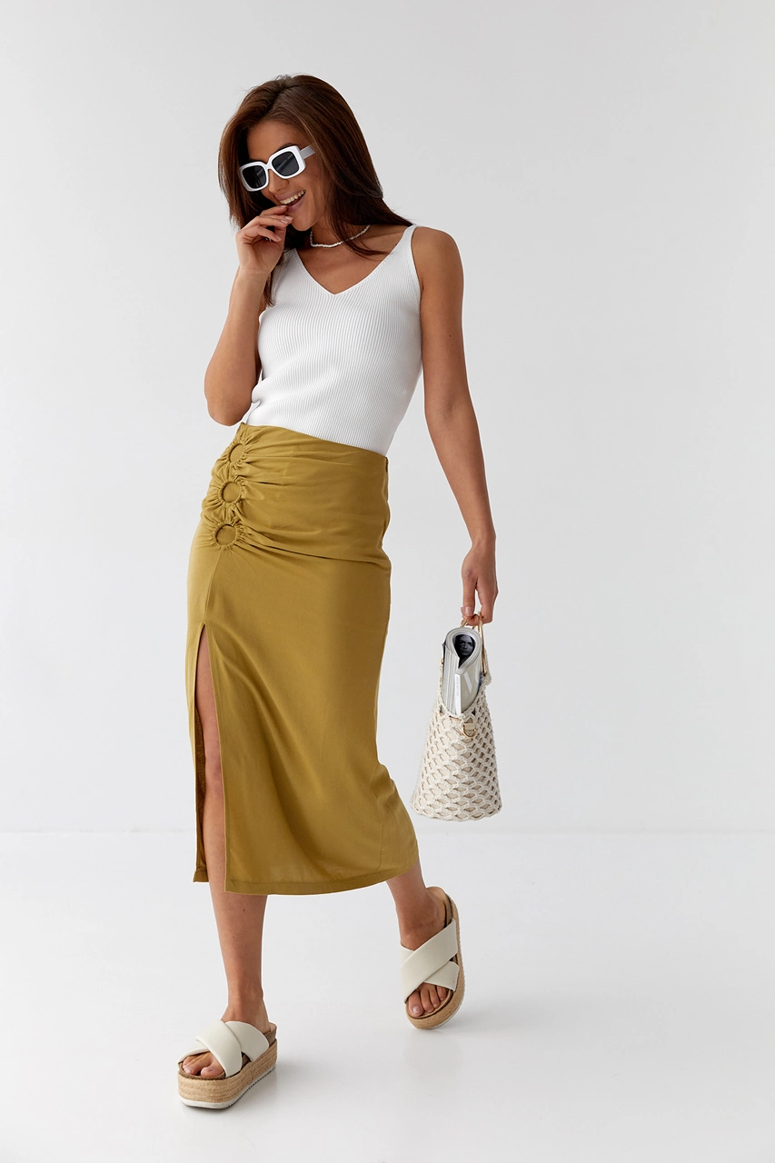 Юбка миди с разрезом и декоративными элементами Ello - горчичный цвет, S (есть размеры)