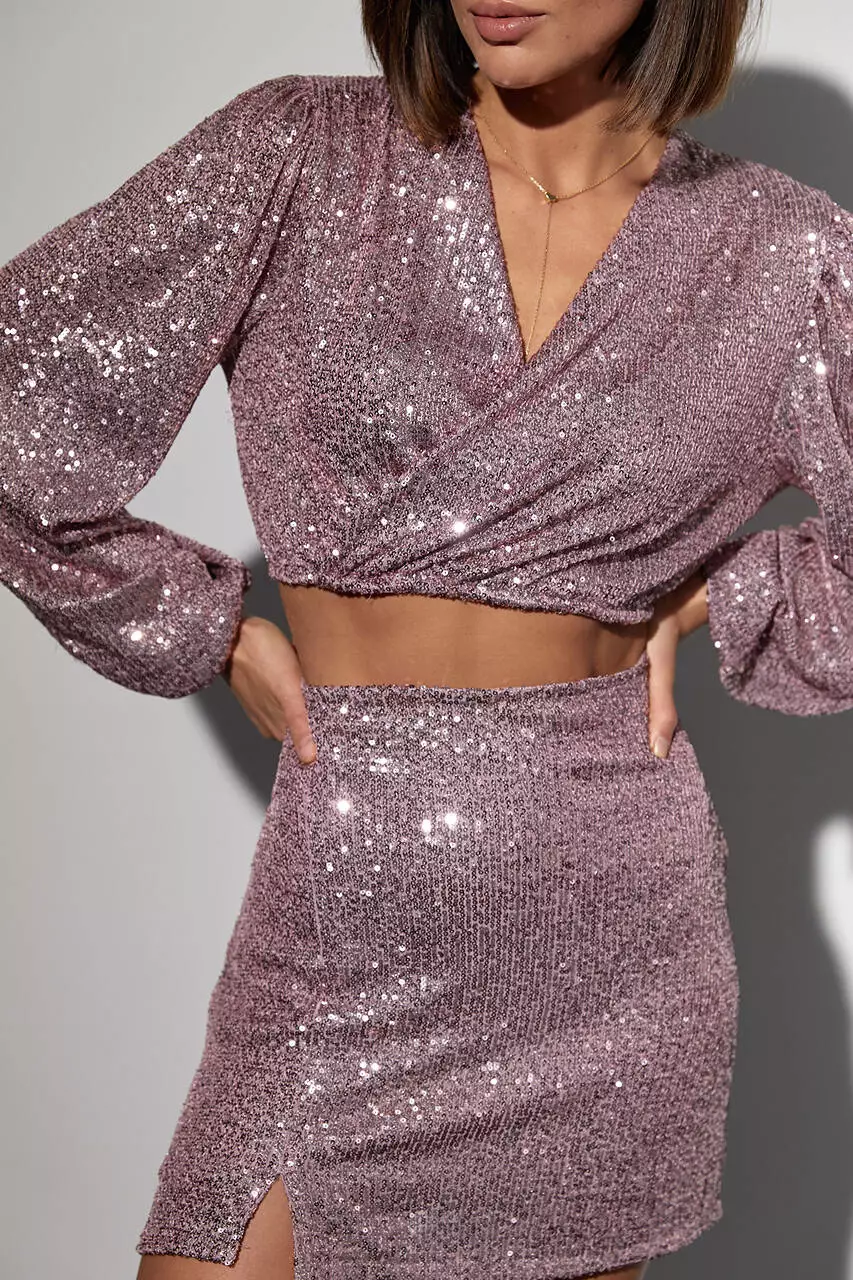 Юбочный костюм-двойка с пайетками - розовый цвет, XL (есть размеры)
