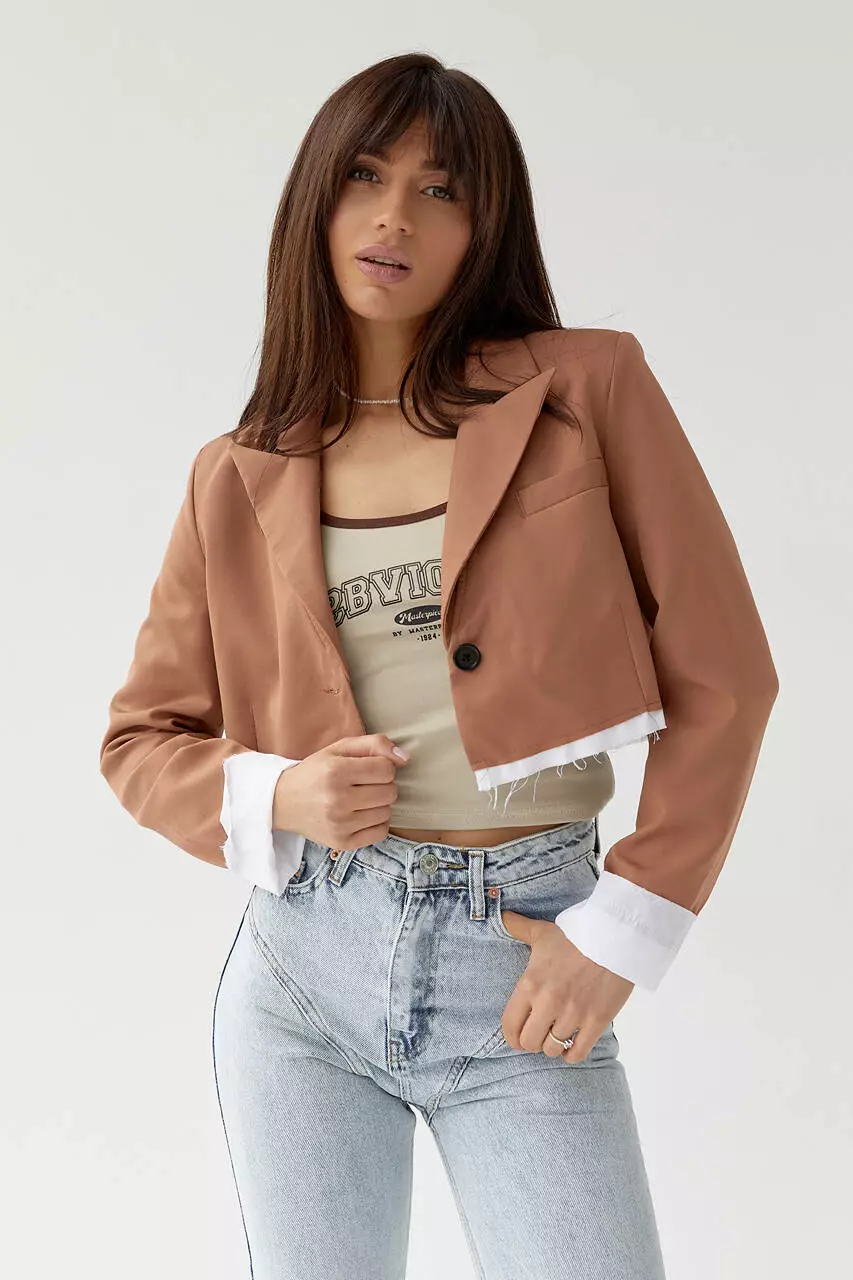 Укороченный модный жакет - просто находка для модниц невысокого