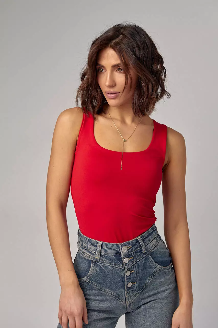 Однотонная базовая майка на широких бретелях - идеальное