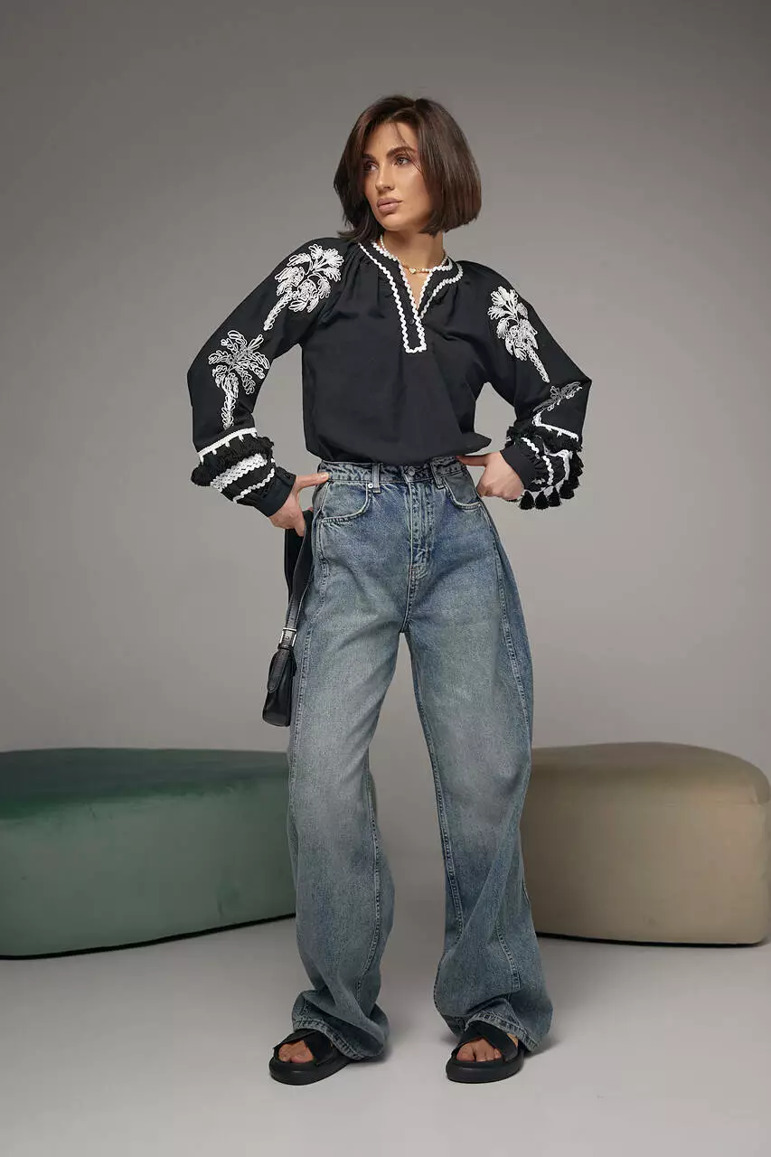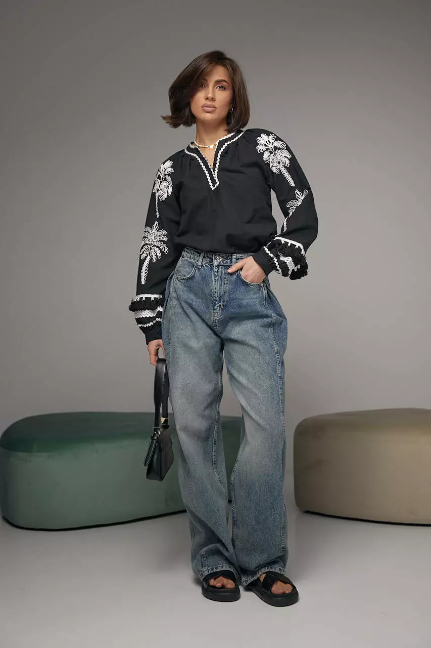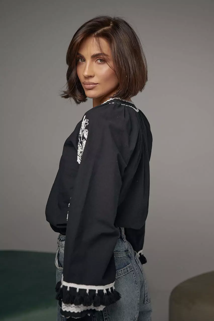 Женская блуза-вышиванка в этностиле - черный цвет, S (есть размеры)