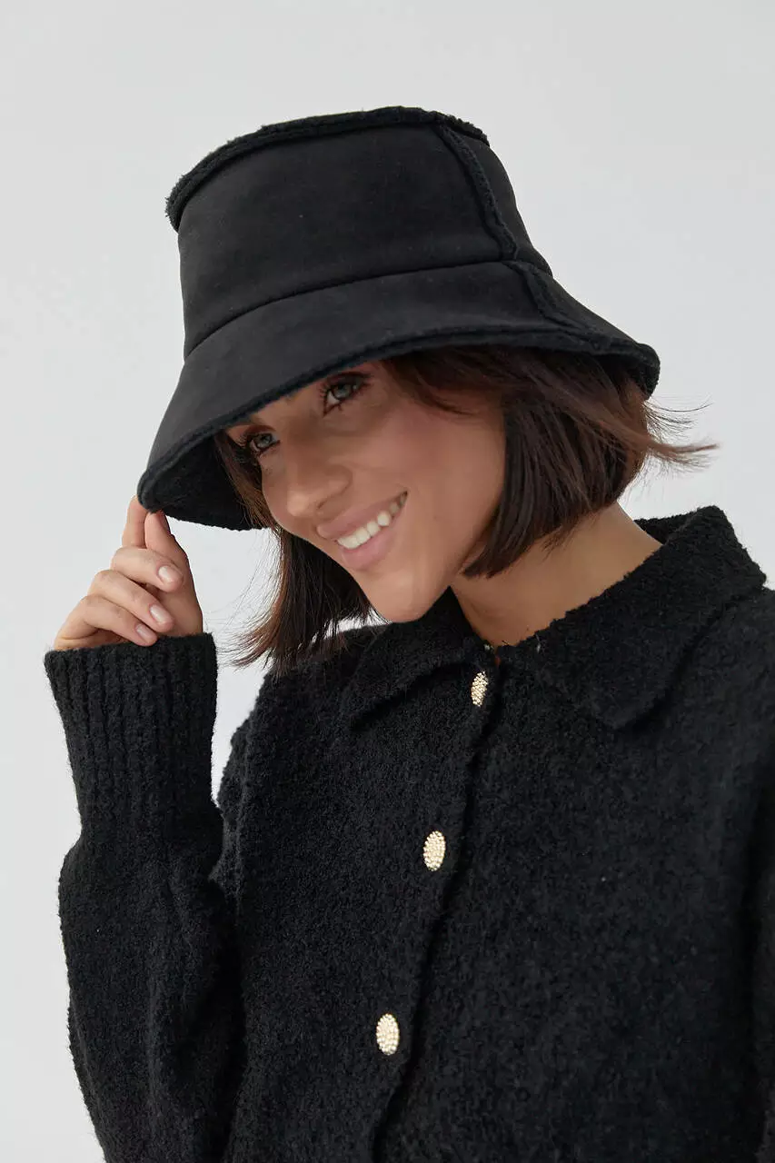 Женская демисезонная панама из экозамши - черный цвет, L (есть размеры)
