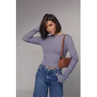 Модель сшита из тонкого трикотажа с фактурной текстурой. Края прямого низа, горловины-стойки и длинных рукавов обработаны роликовым швом.