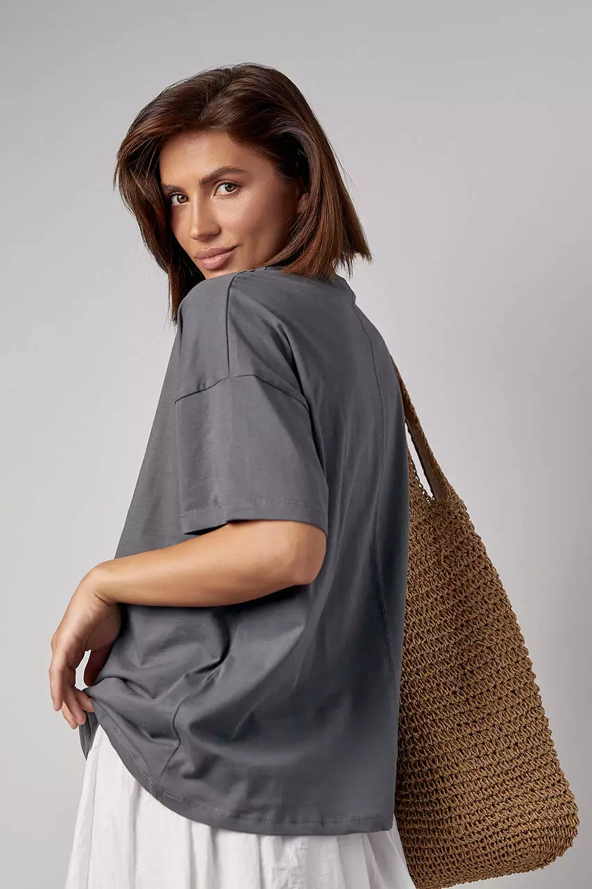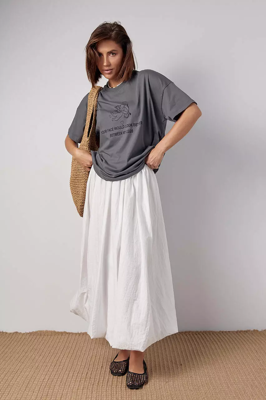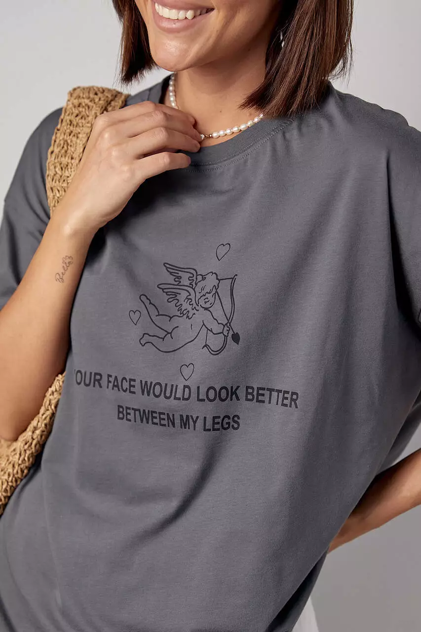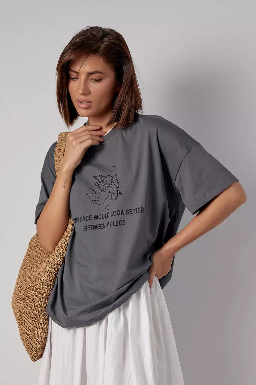 Женская футболка oversize с принтом ангела - серый цвет, S (есть размеры)