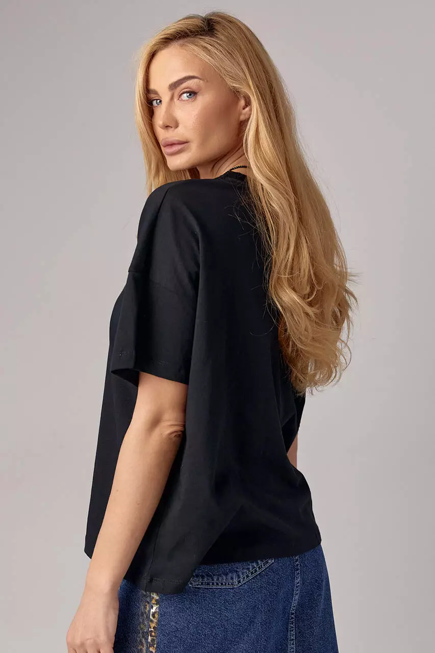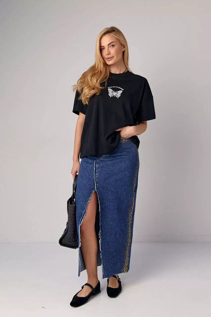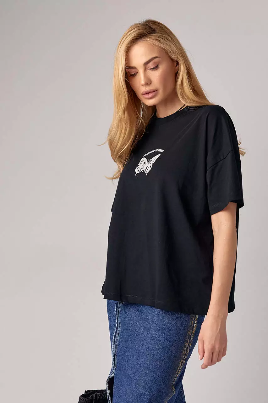 Женская футболка oversize с принтом бабочки - черный цвет, L (есть размеры)