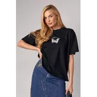Принт с бабочкой добавляет футболке нотку легкости и воздушности, придавая образу нежности и романтики.