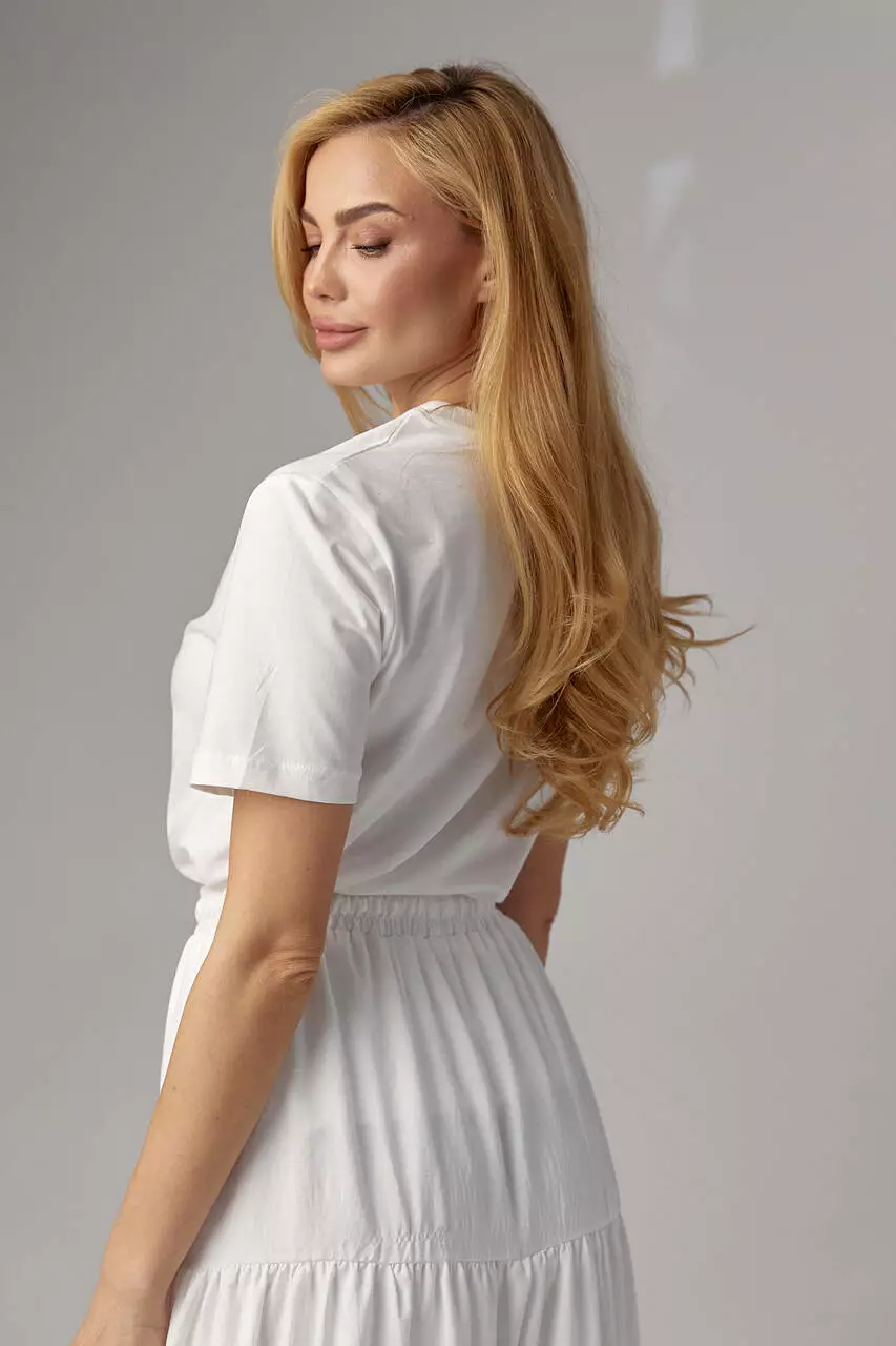 Изготовленная из мягкого трикотажного материала, эта футболка обеспечивает комфорт и свободу движения в течение дня.