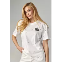 Женская футболка со стразами и вышитой надписью Miu Miu - молочный цвет, S (есть размеры)