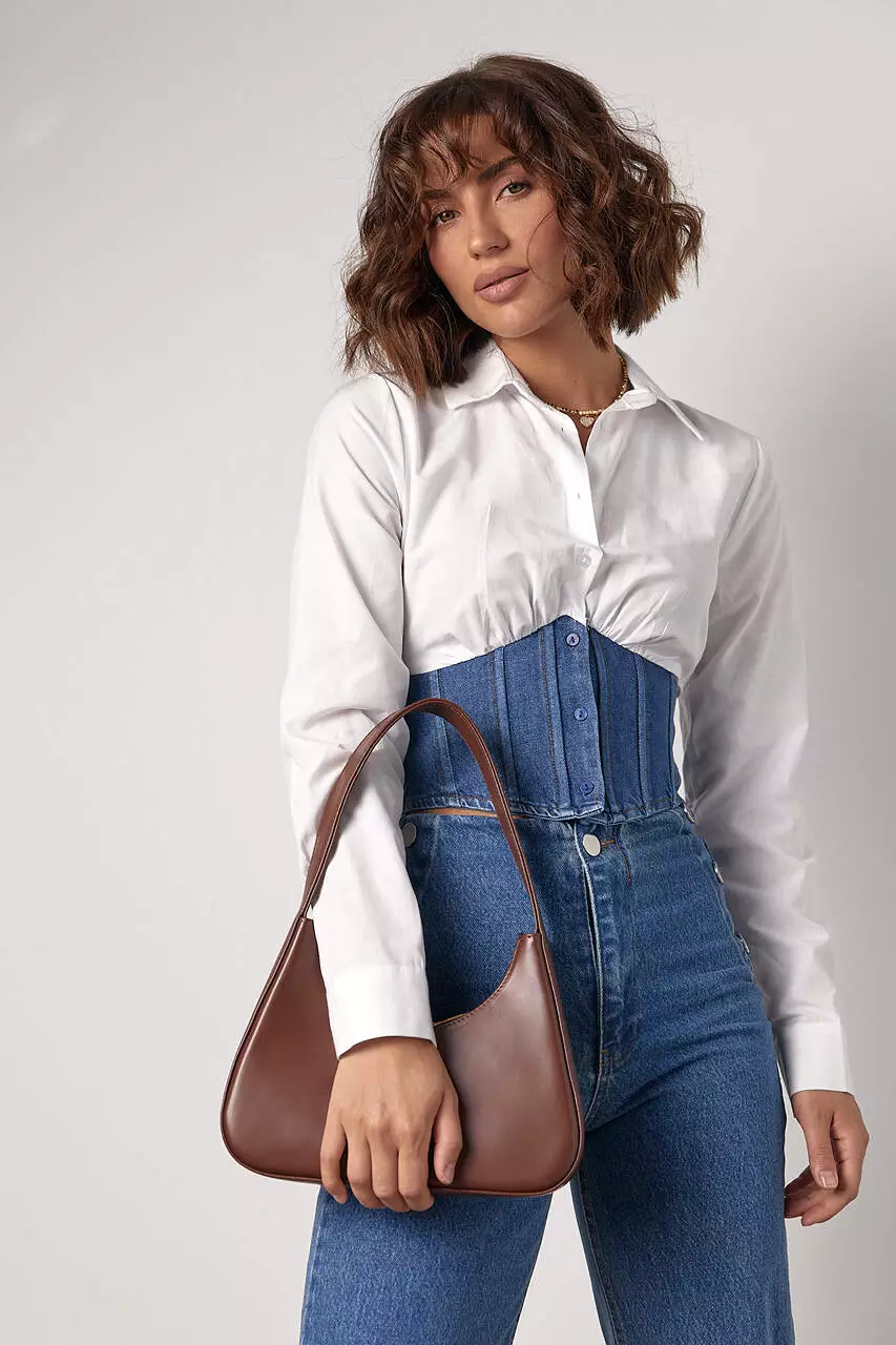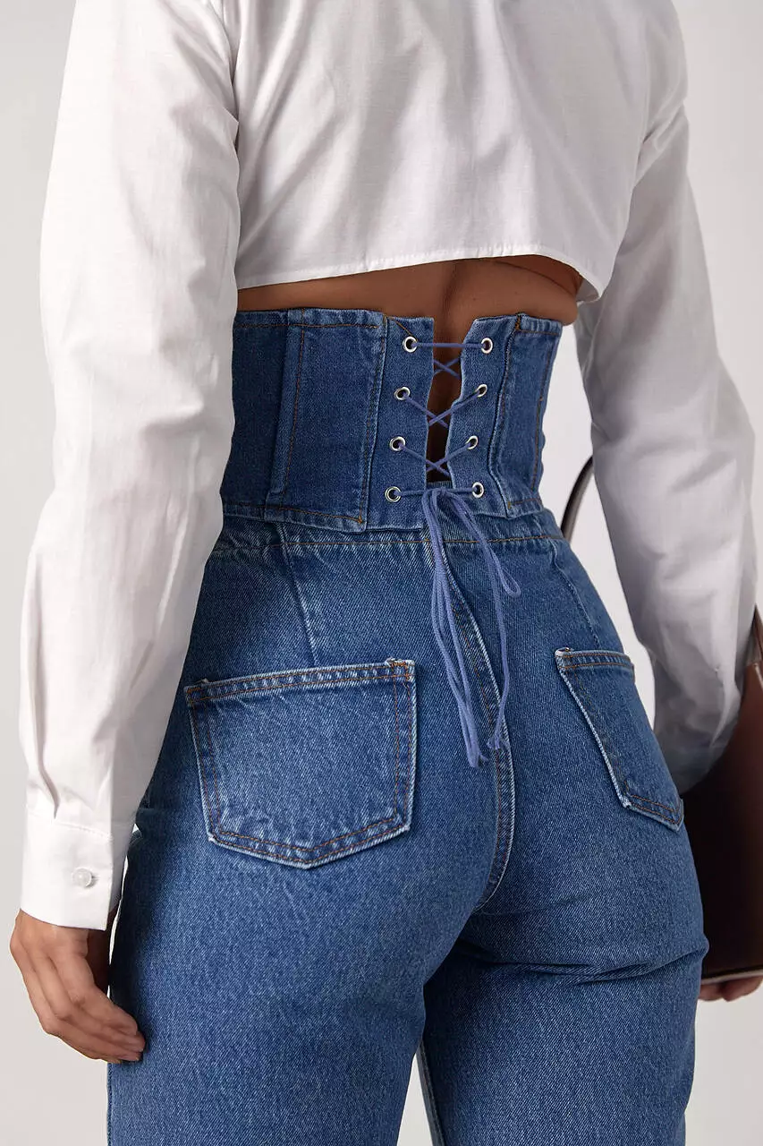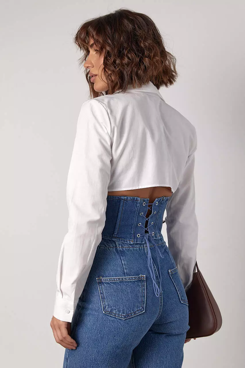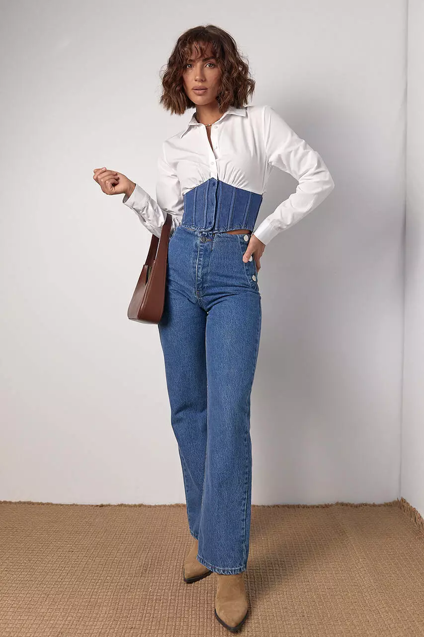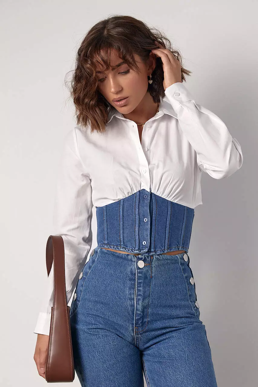 рубашки, на уровне талии, дополнена джинсовым корсетом, который
