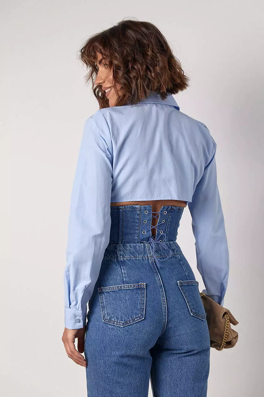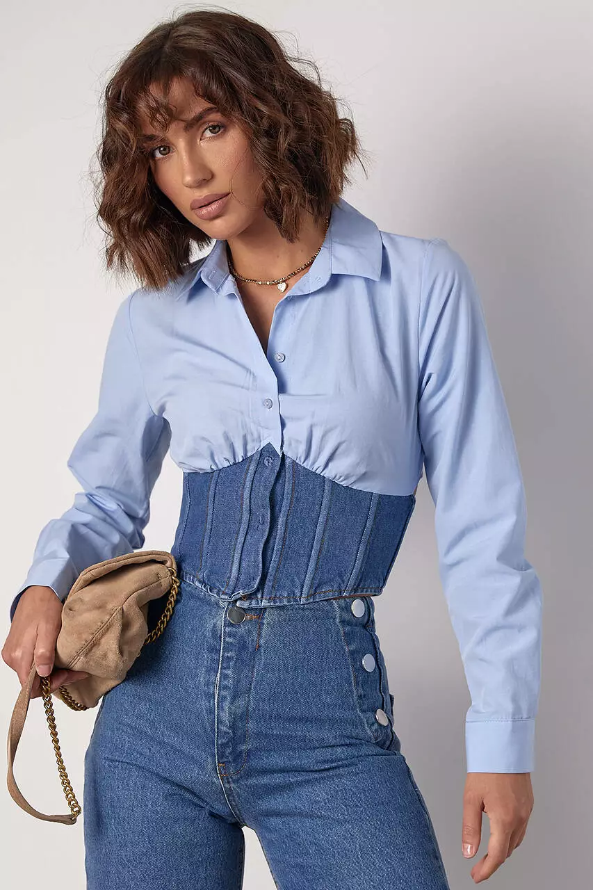 рубашки, на уровне талии, дополнена джинсовым корсетом, который