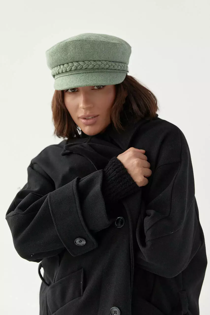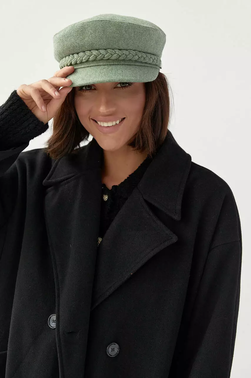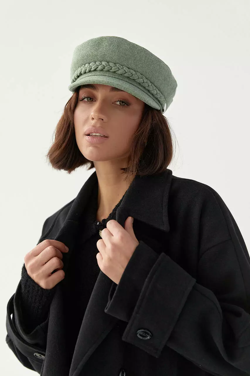Женская кепи из кашемира с косичкой - мятный цвет, L (есть размеры)