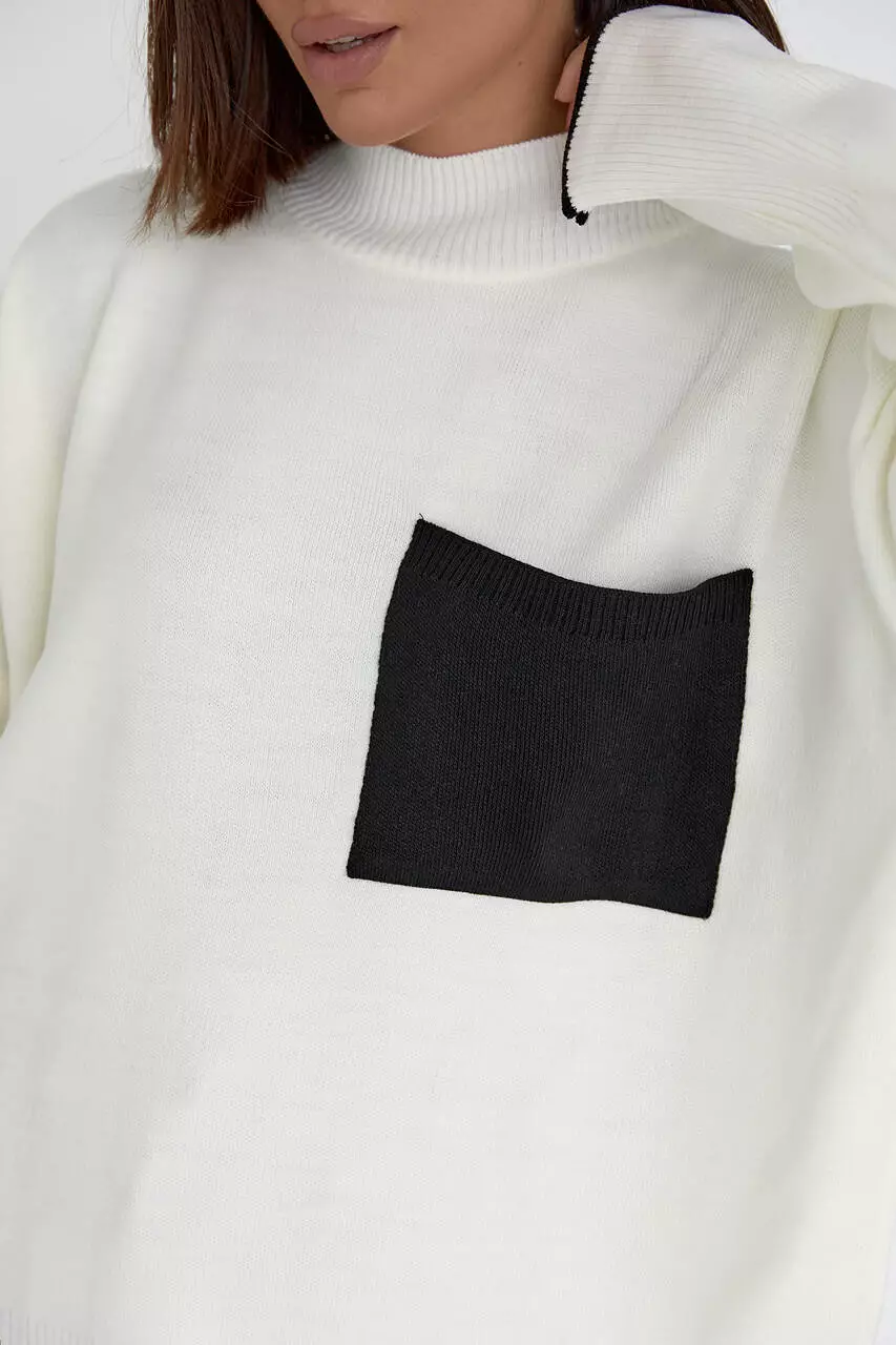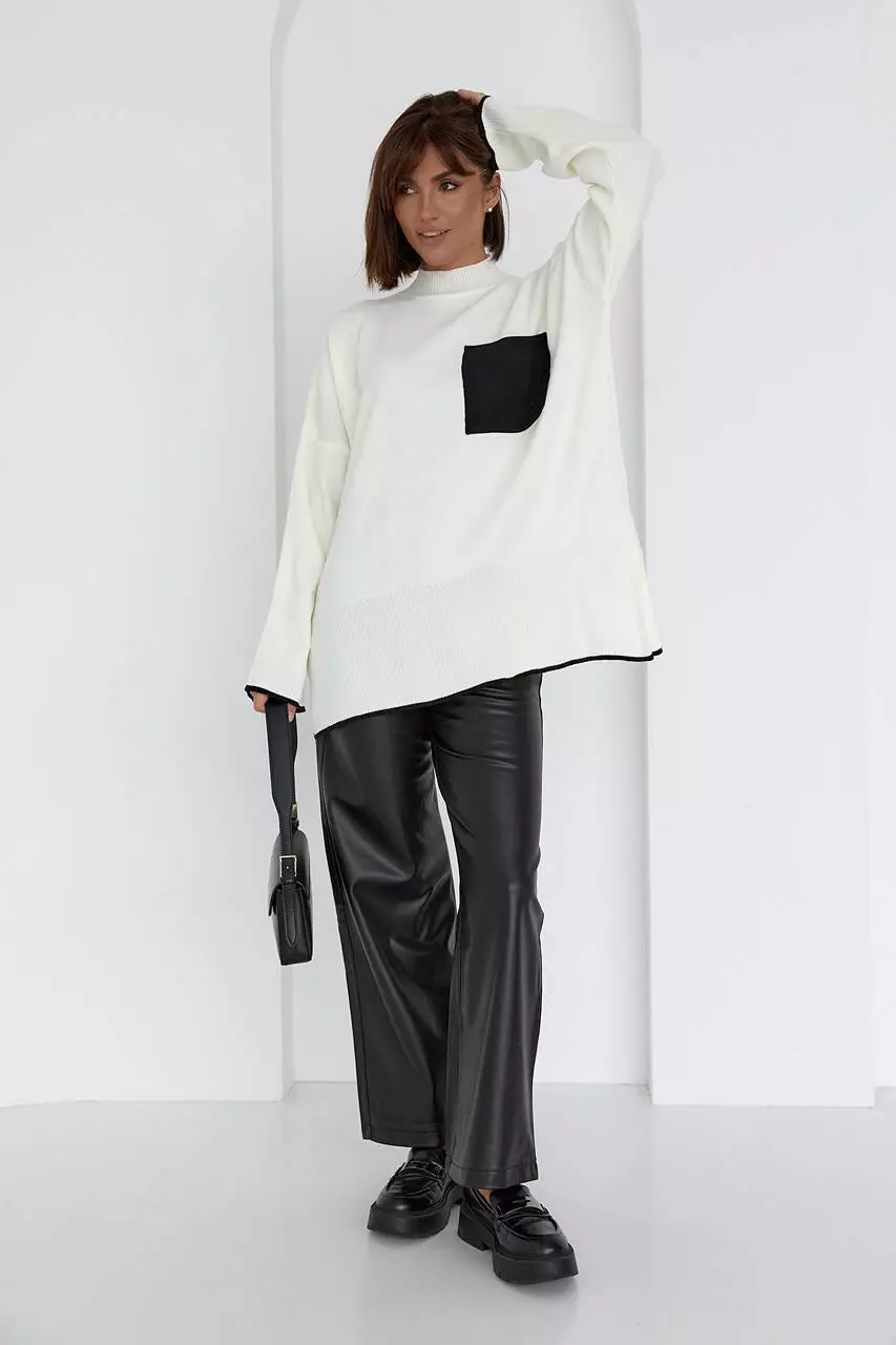 В этой модели контрастный кармашек, пришитый спереди, не только