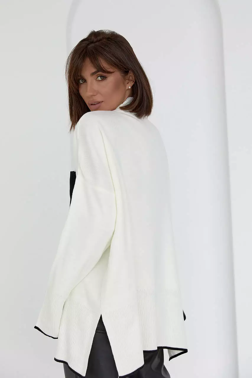 образе. Сама кофта идет с воротником-стойкой, длинными