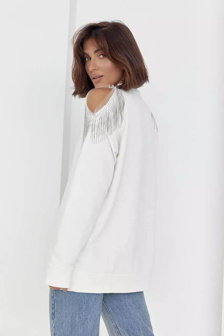 Плечевые разрезы, которые украшены нежными цепочками, никого не