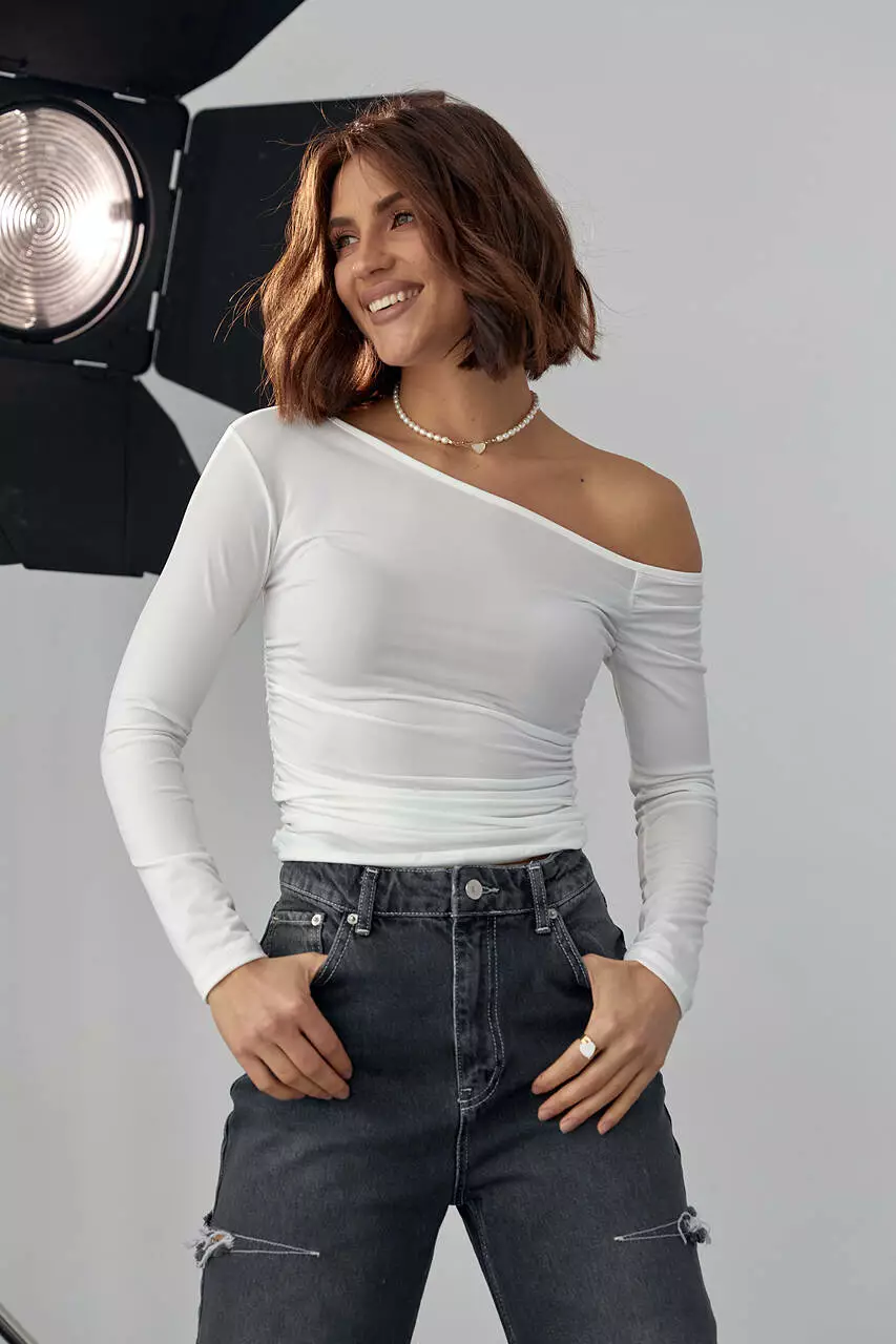асимметричной горловиной и драпировкой. С таким верхом ты легко