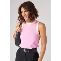 Практичная и универсальная женская майка с контрастной окантовкой – то, что нужно на каждый день и для занятий спортом. С ней легко комбинировать одежду разных стилей и фасонов.