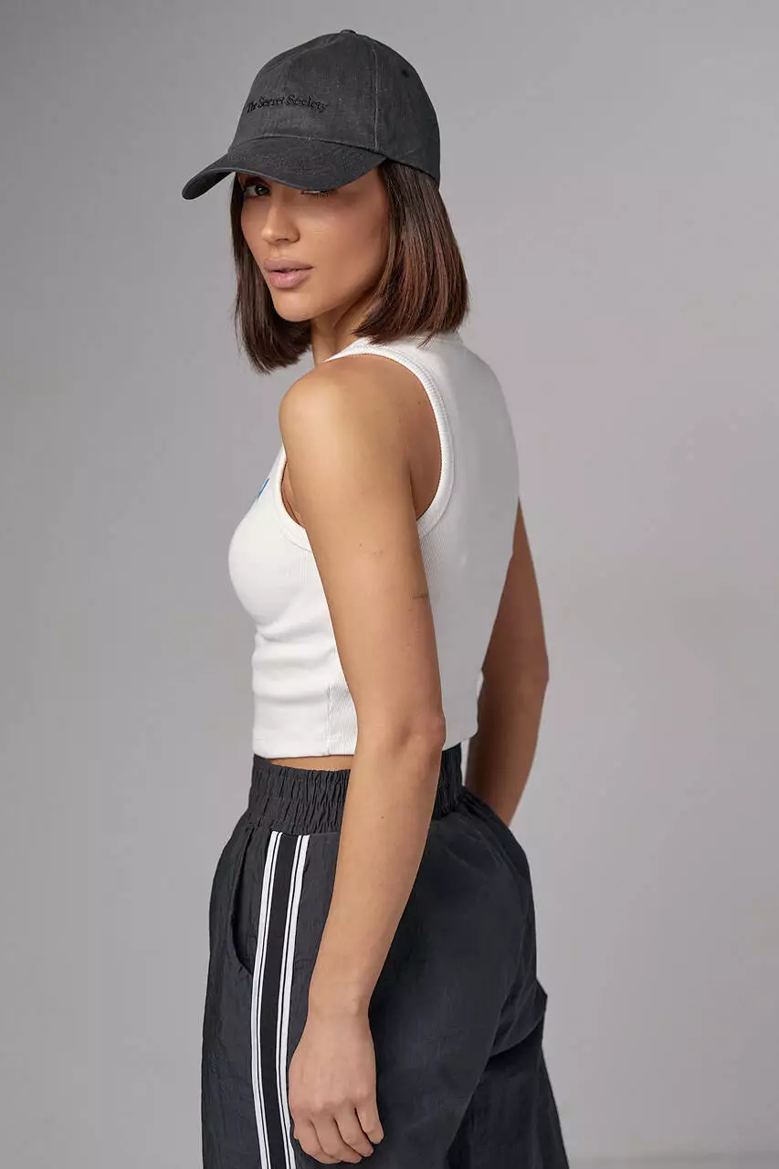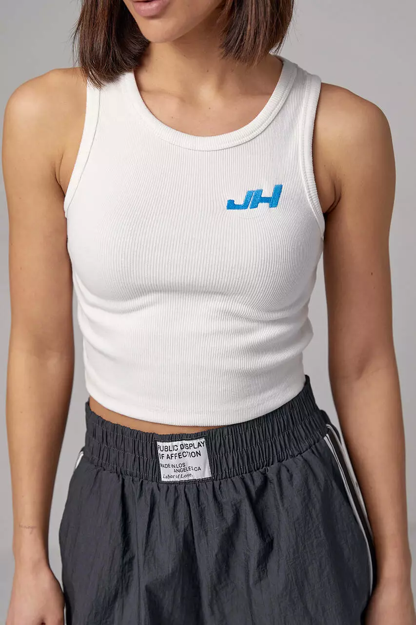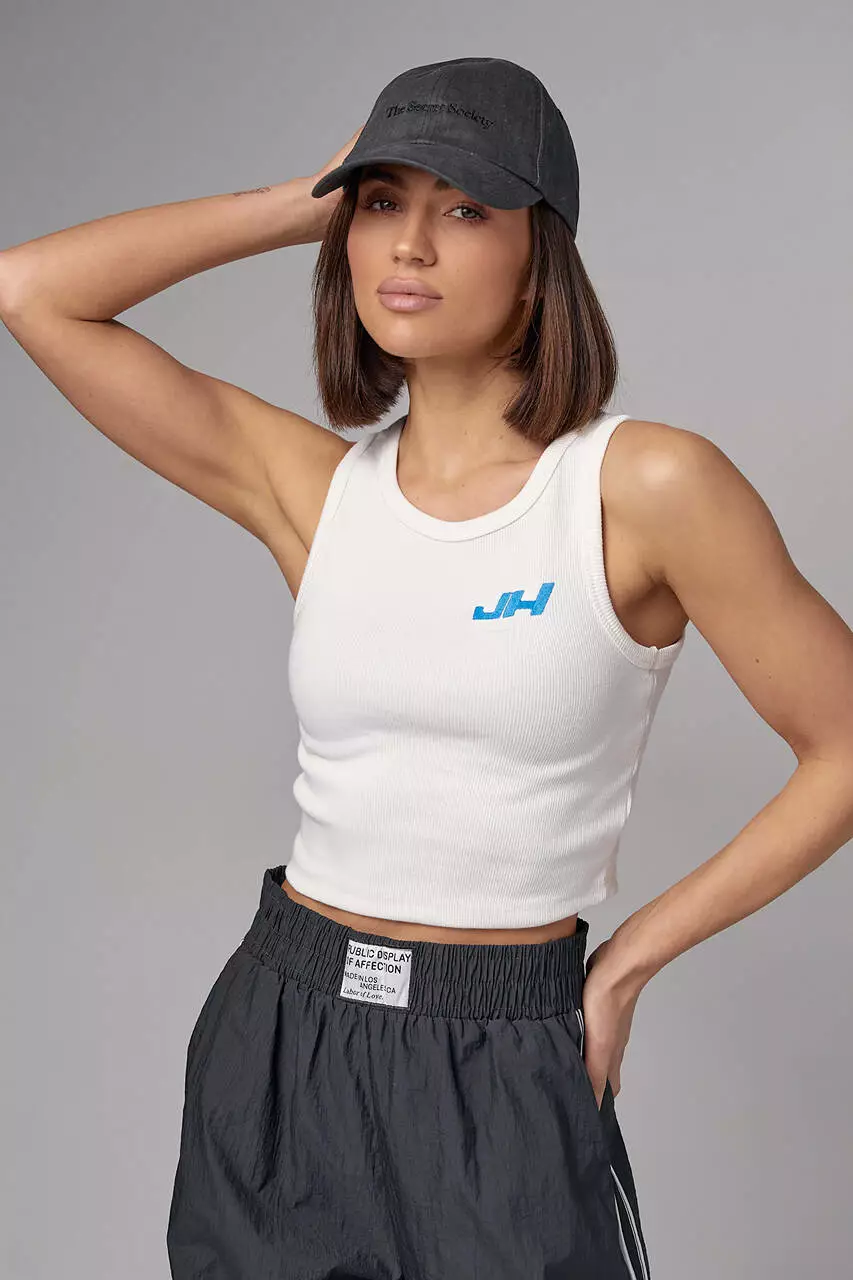 Женская майка в рубчик с вышивкой JH - молочный цвет, S (есть размеры)