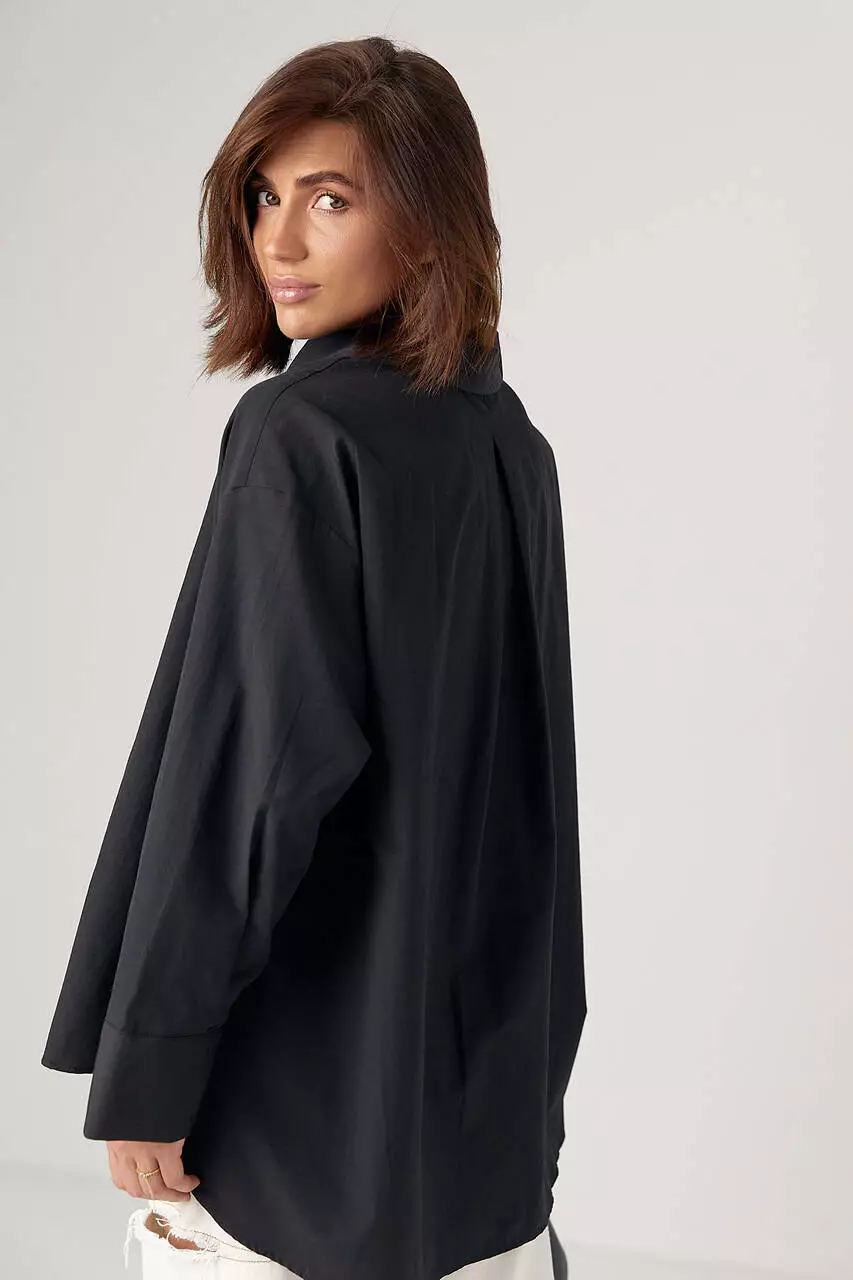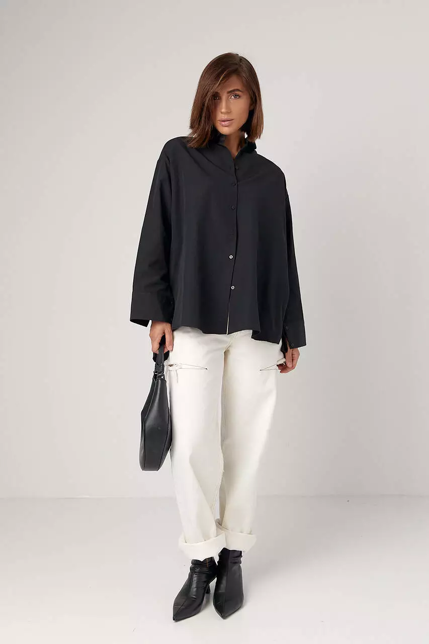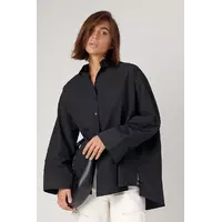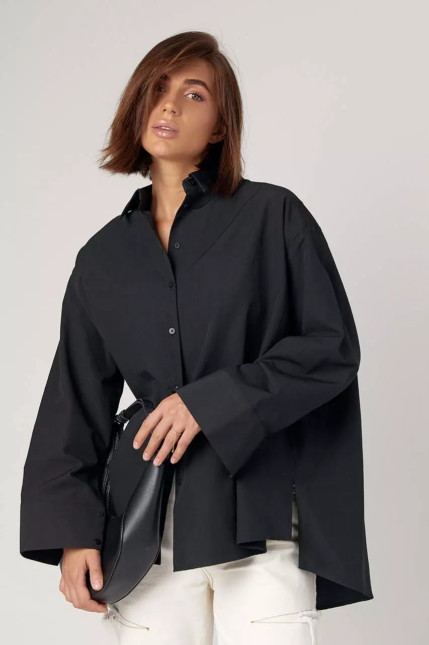 Женская рубашка оверсайз с разрезами по бокам - черный цвет, L (есть размеры)