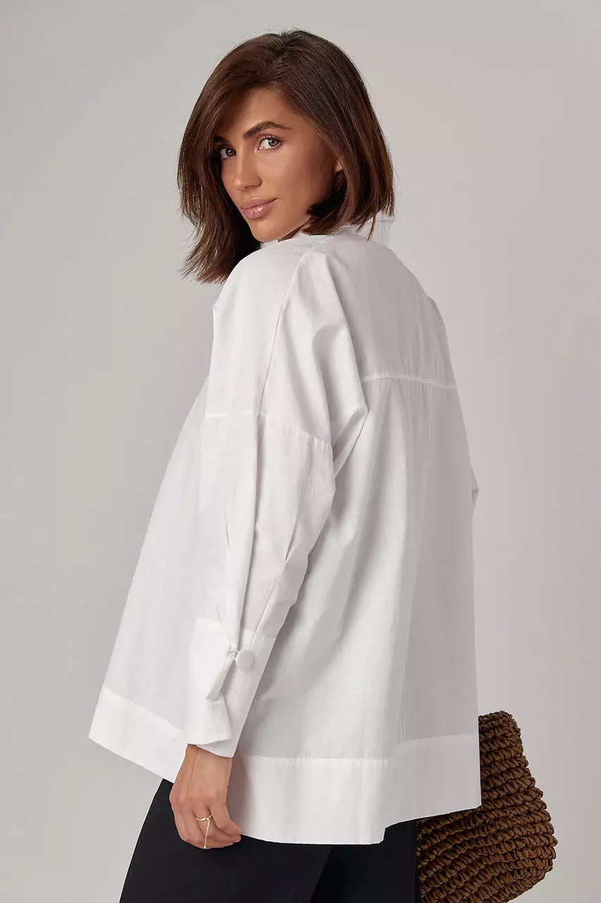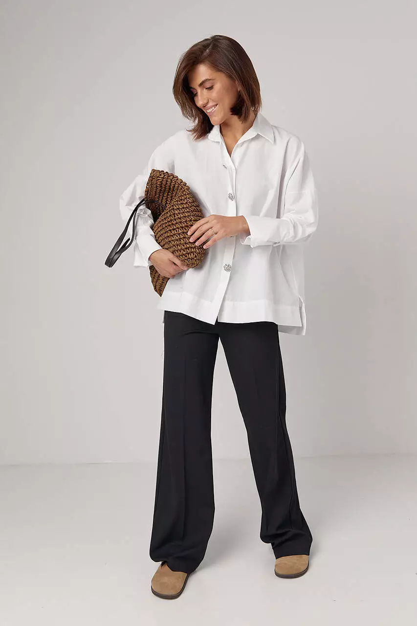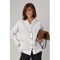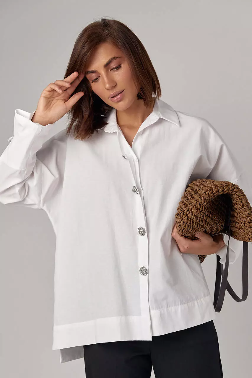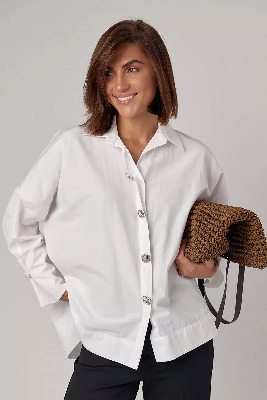 Женская рубашка oversize украшена пуговицами со стразами - белый цвет, S (есть размеры)