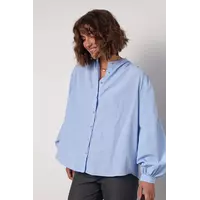 Женская рубашка с объемными рукавами на пуговицах-сердечках - голубой цвет, M (есть размеры)