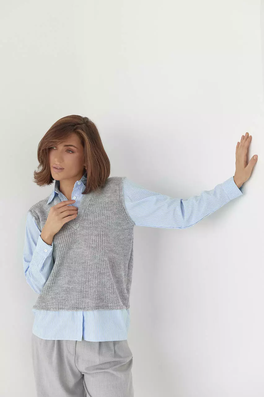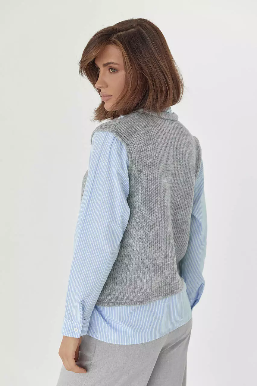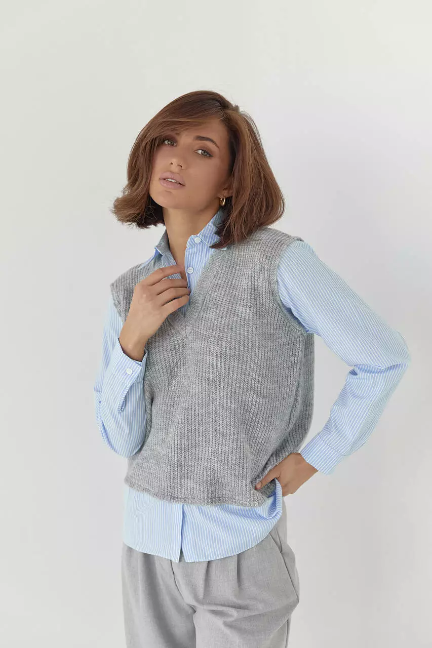 Женская рубашка с вязаным жилетом - серый цвет, L (есть размеры)