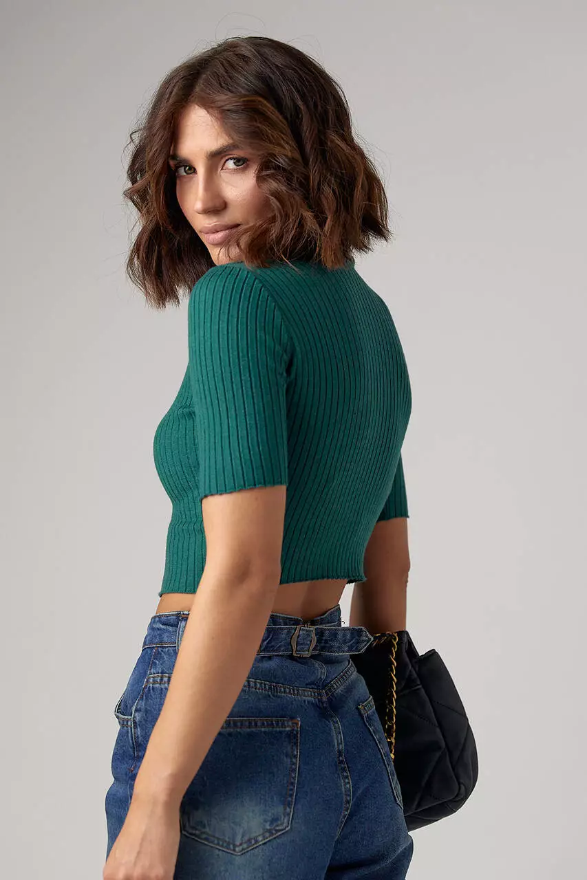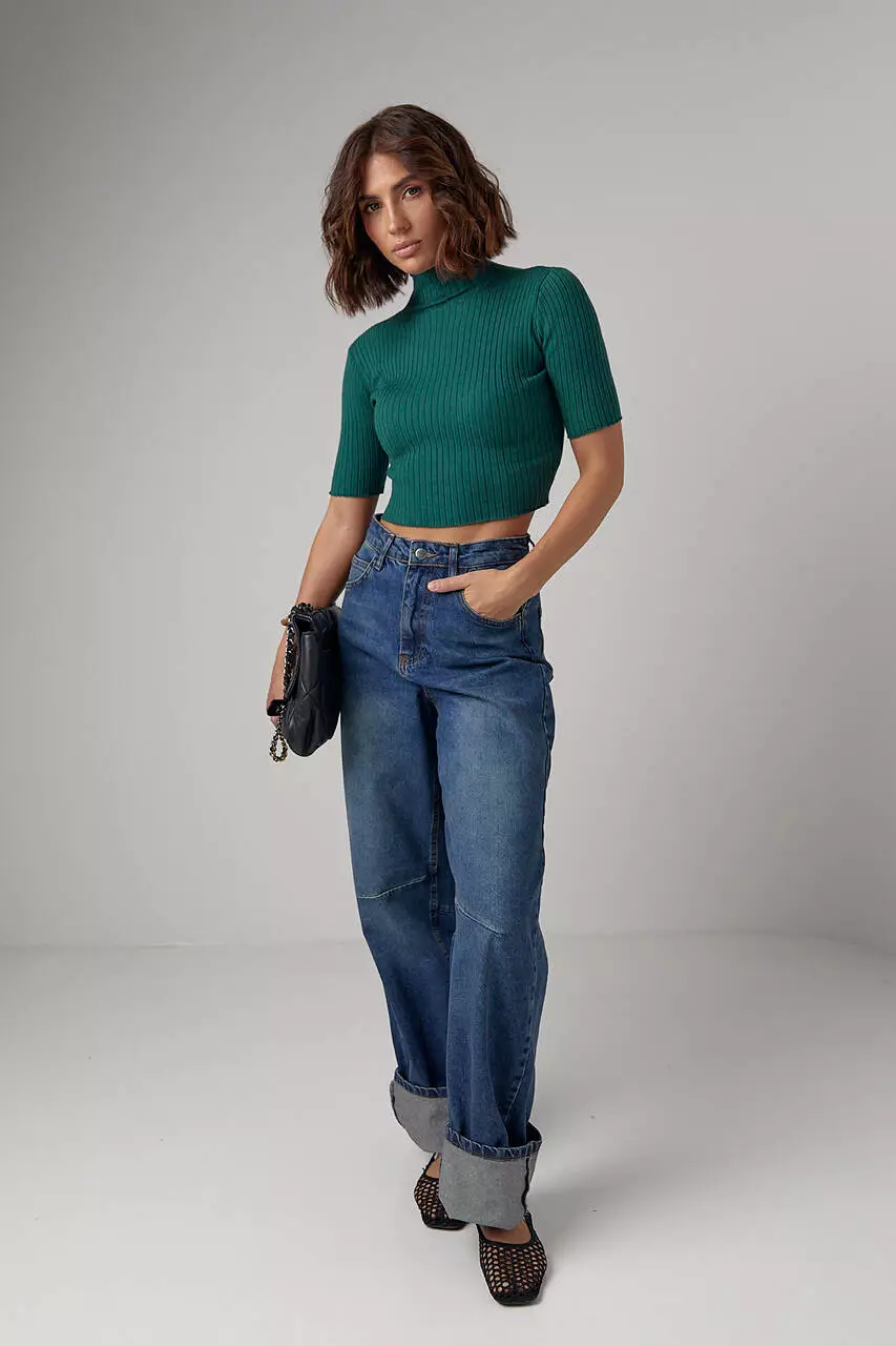 Стильная укороченная водолазка с коротким рукавом в широкий
