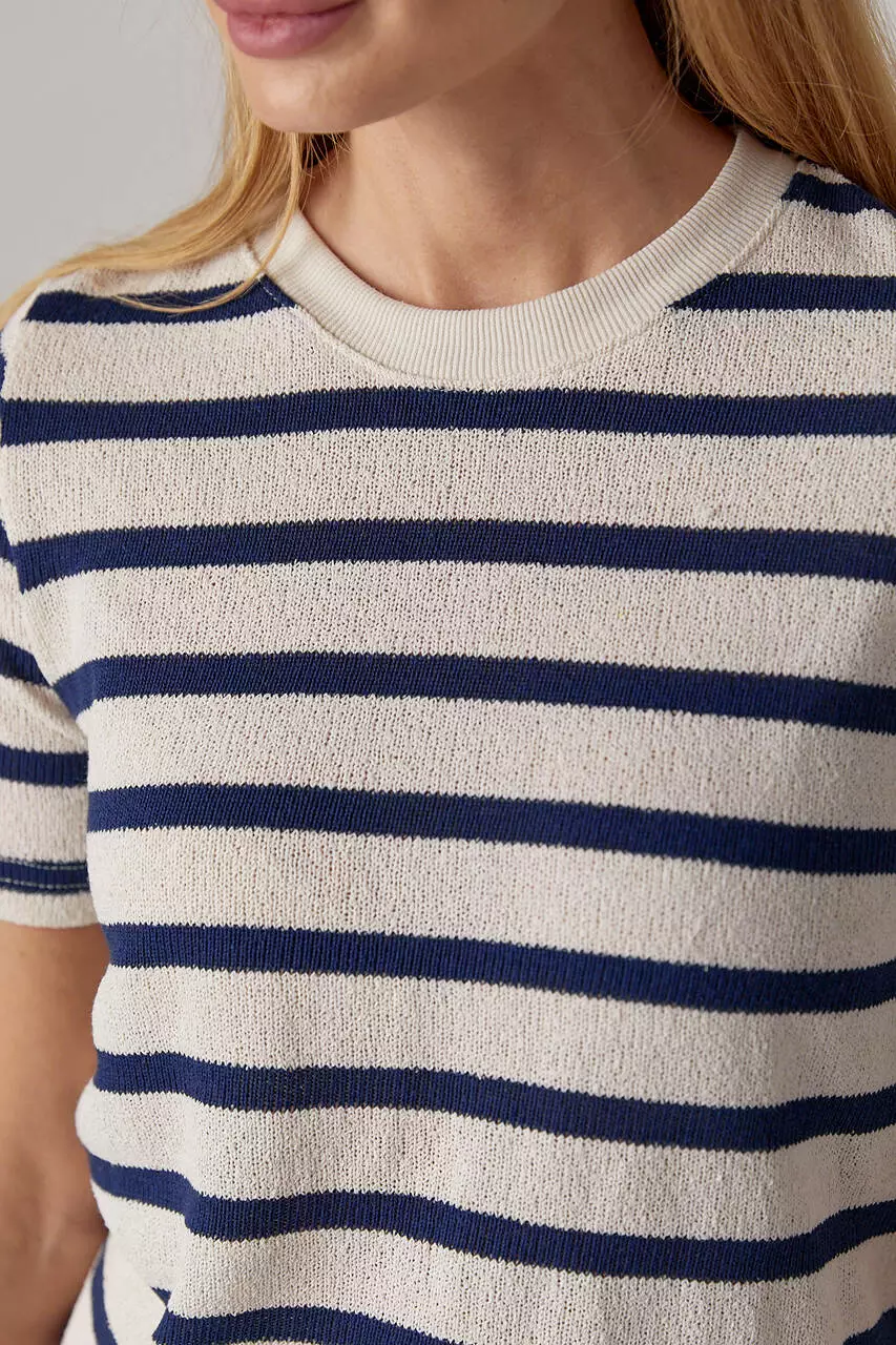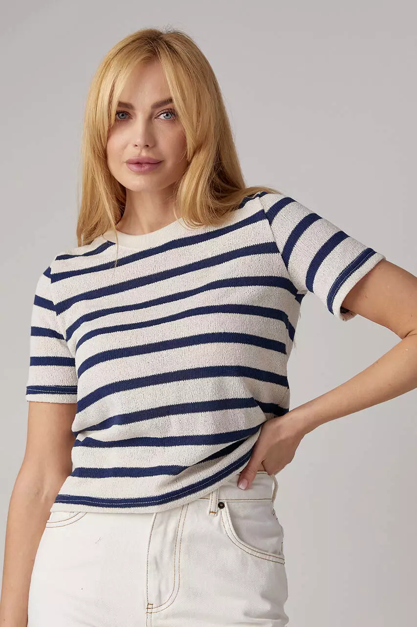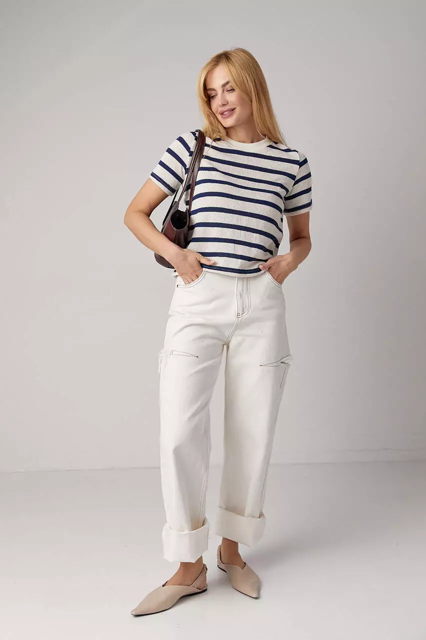 С такой укороченной вязаной футболкой ты можешь сочетать и