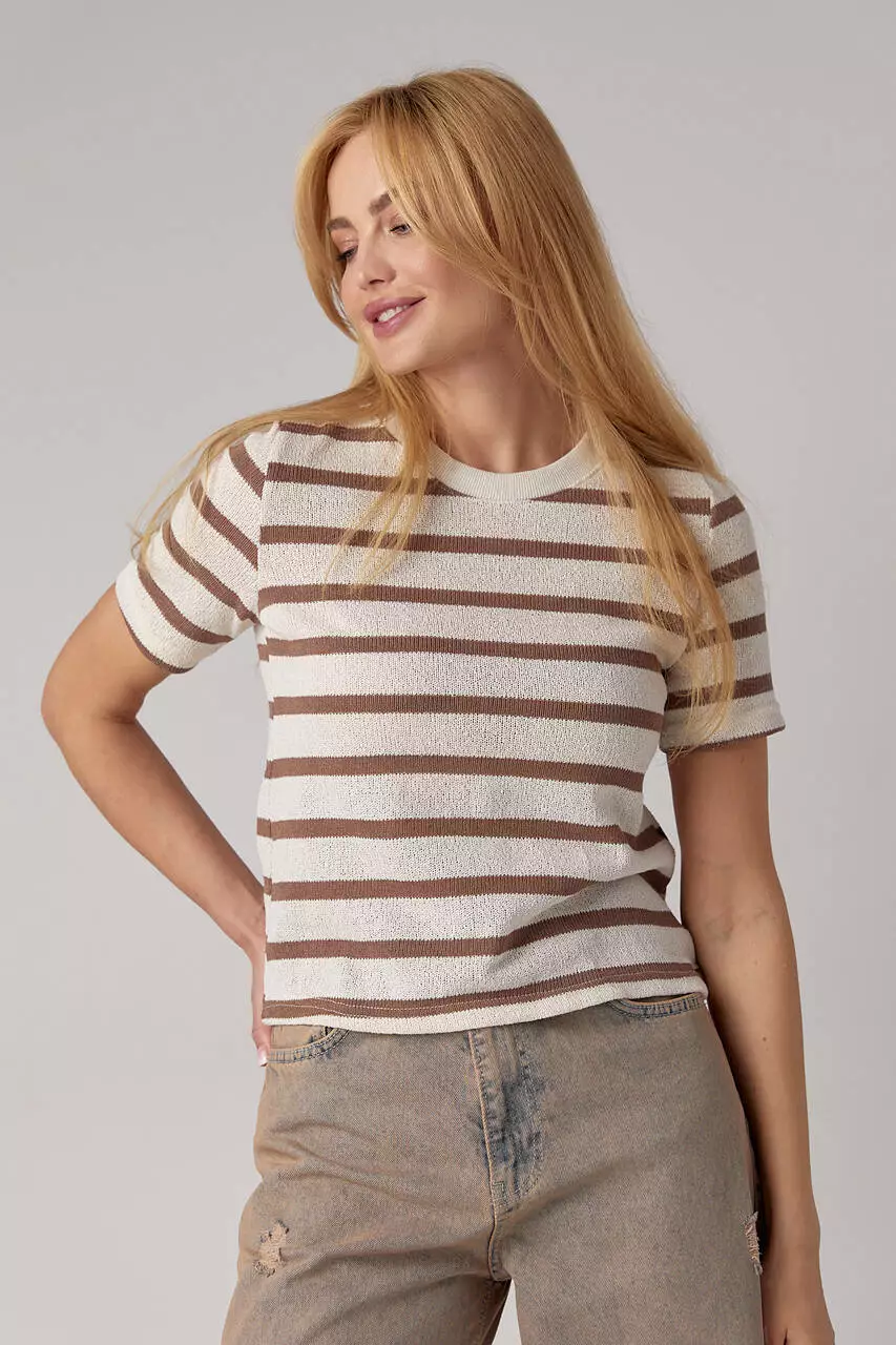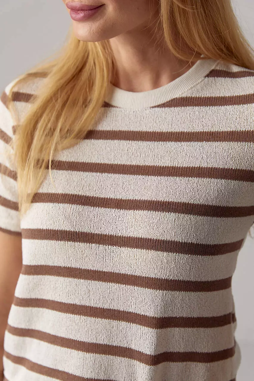 С такой укороченной вязаной футболкой ты можешь сочетать и