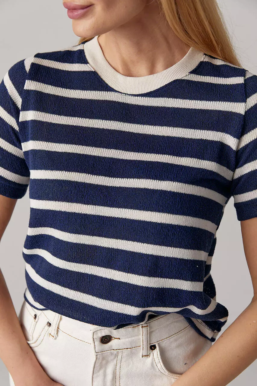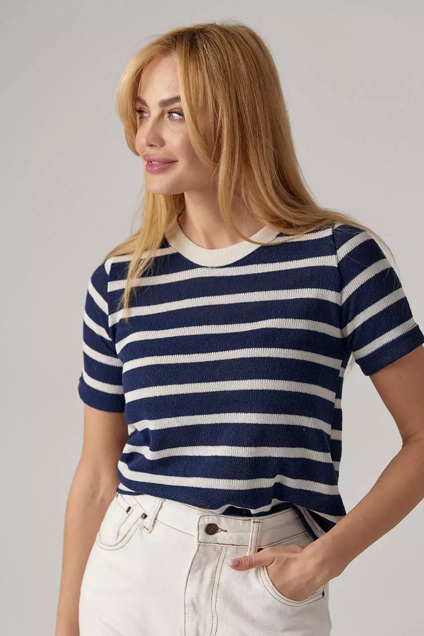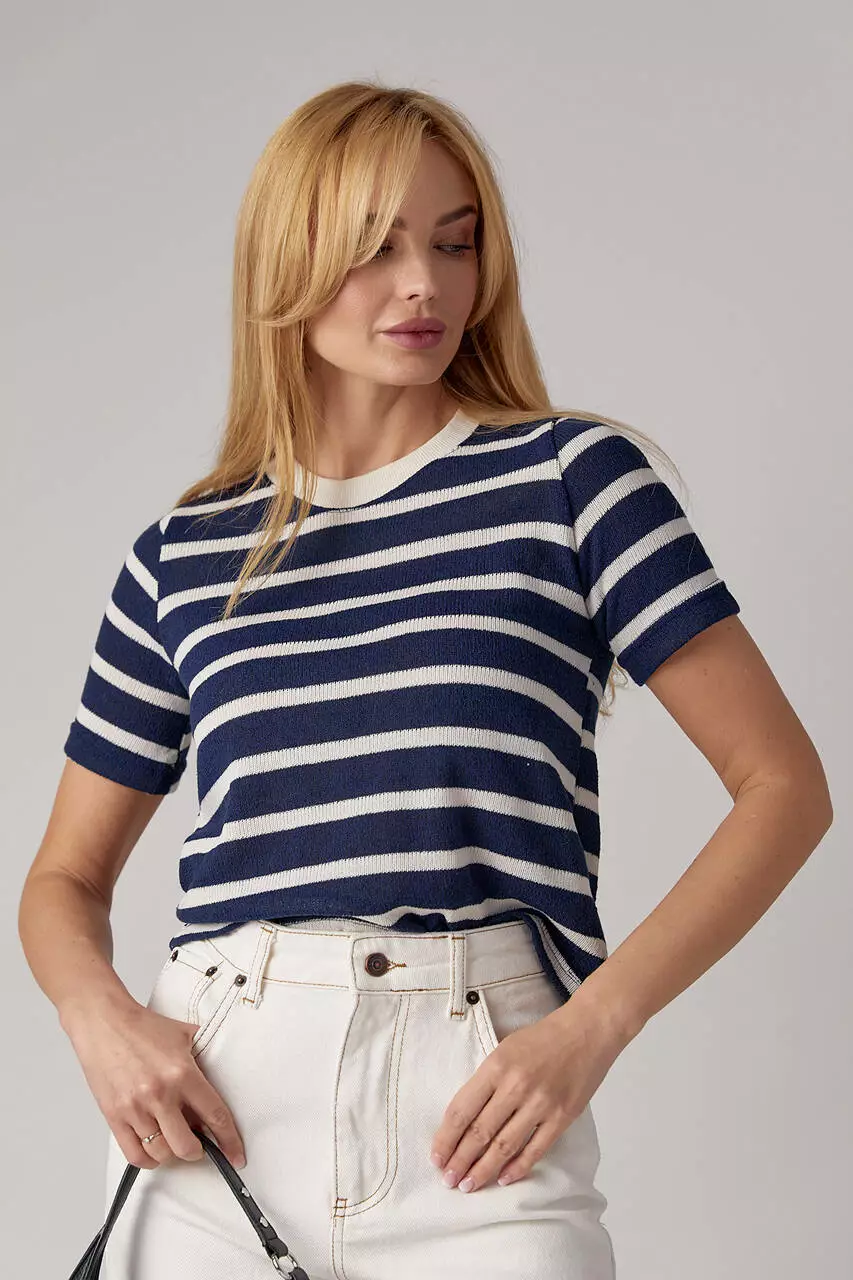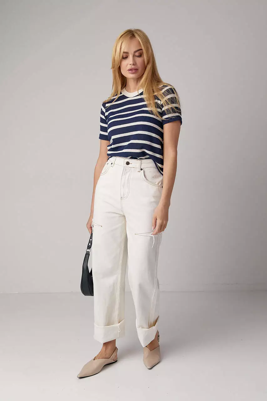 С такой укороченной вязаной футболкой ты можешь сочетать и