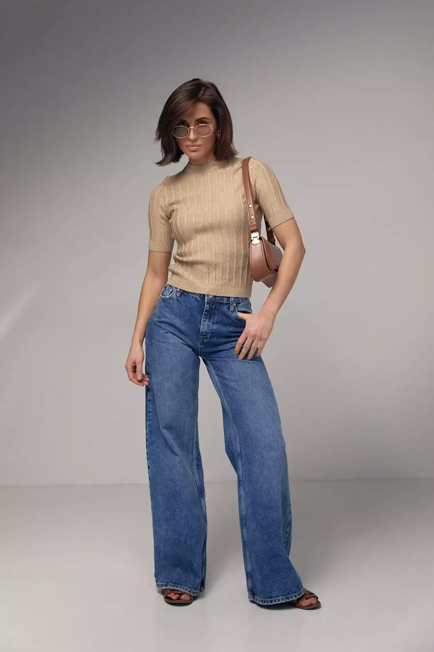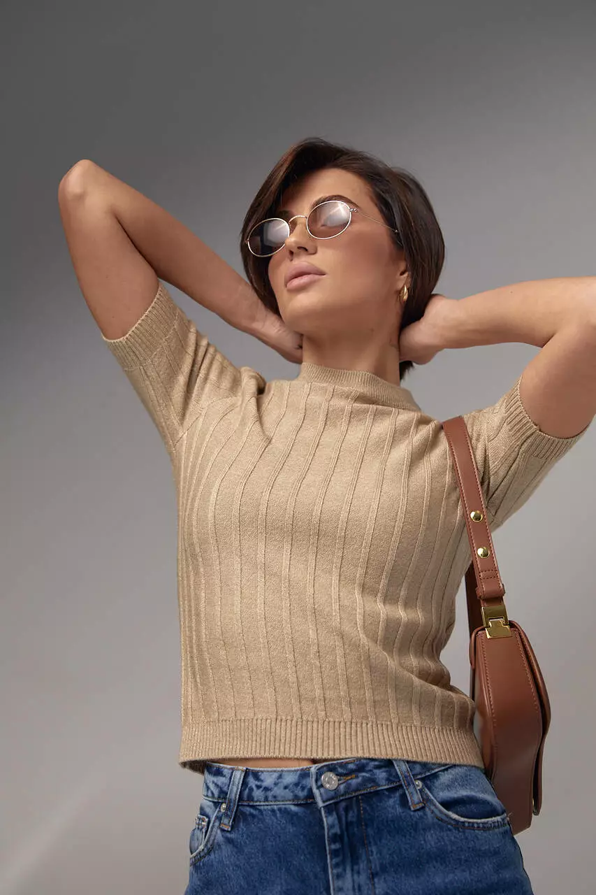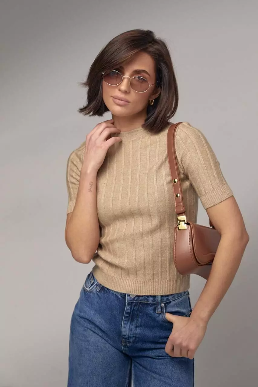 Модель полностью выполнена из машинной вязки в рубчик, который к
