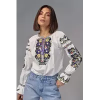С такой красивой женской вышиванкой каждый твой look будет наполнен весенним настроением. Ее секрет в вышитых гладью букетах цветов, которыми украшены полочка и длинные рукава-регланы.