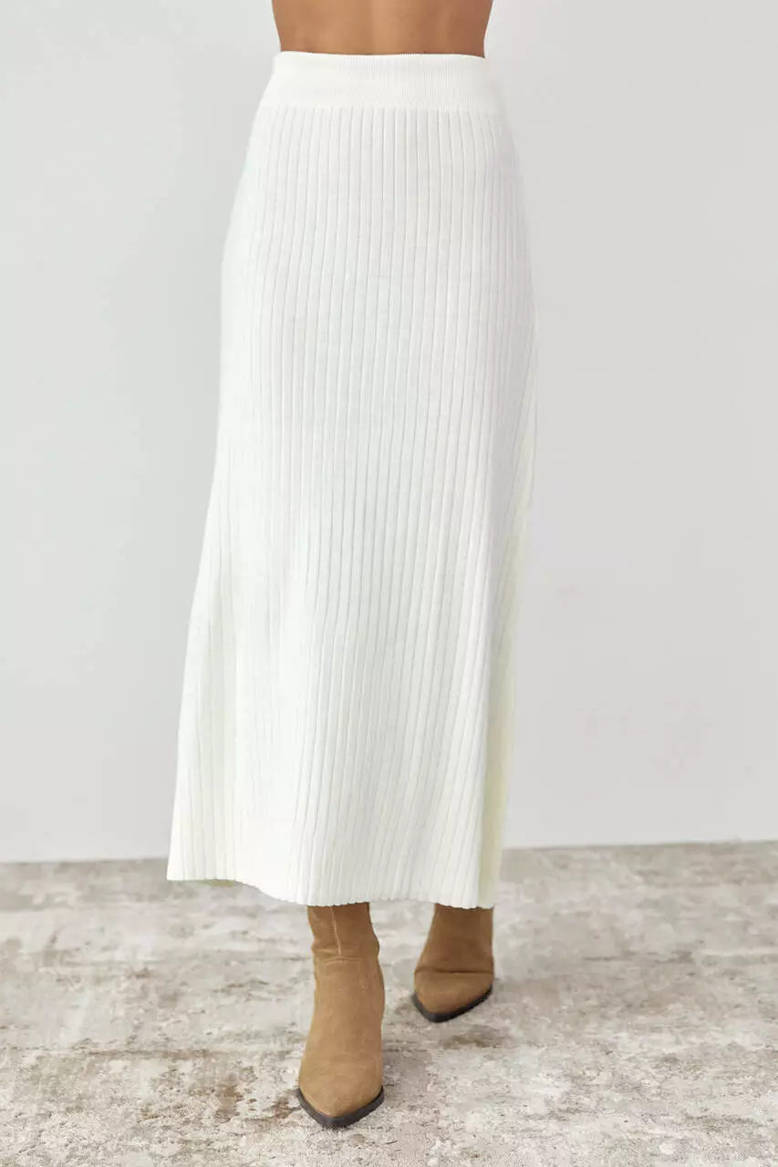 Женская юбка миди в широкий рубчик - молочный цвет, S (есть размеры)