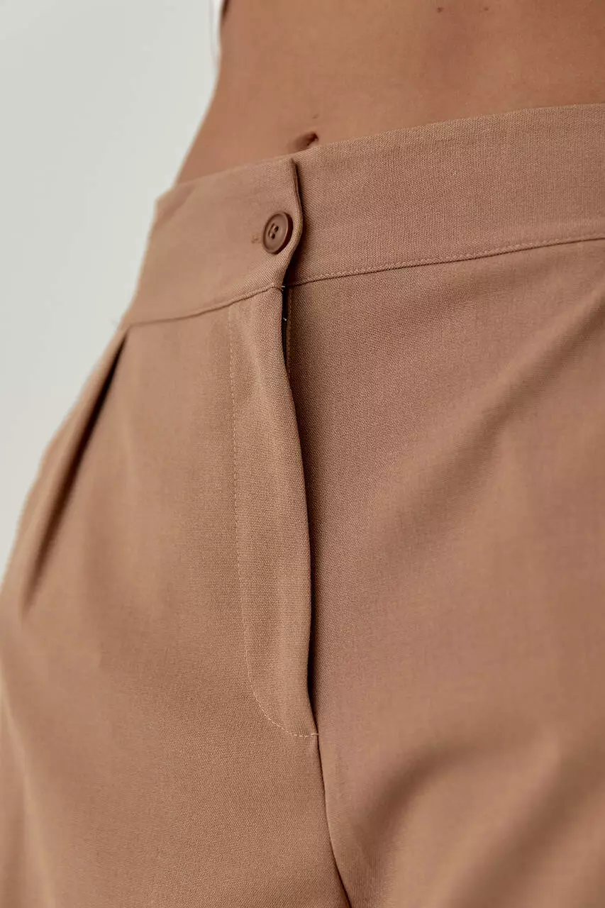 вытачки, а спереди штаны застегиваются по центру на пуговицу и