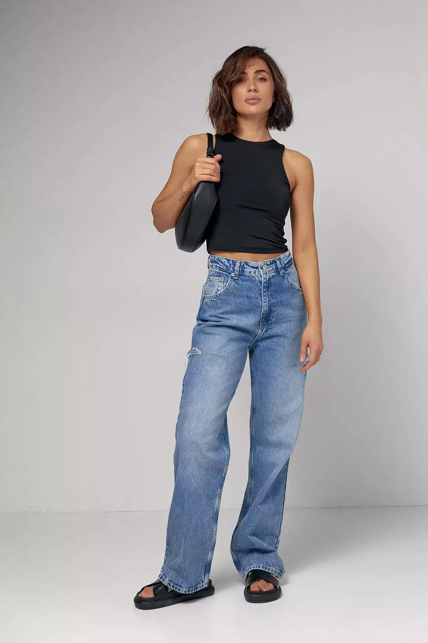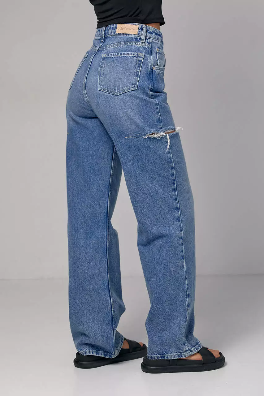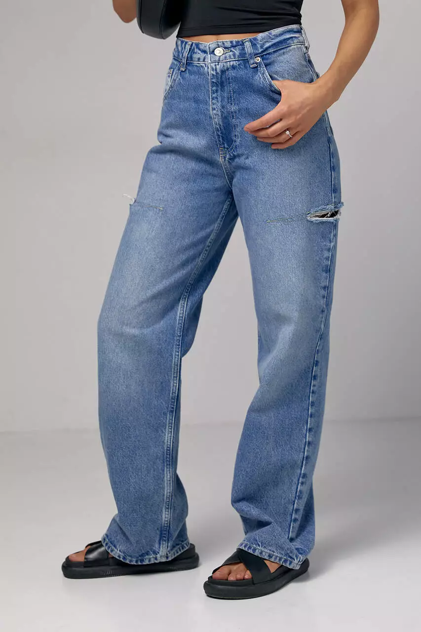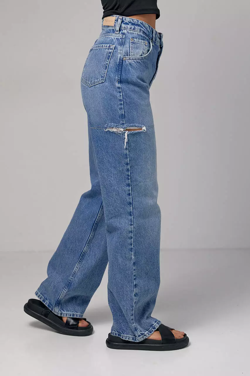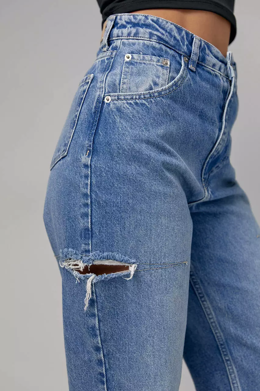 Стильные джинсы с декоративными разрезами на бедрах, придадут вашему образу актуальный эффект небрежности.