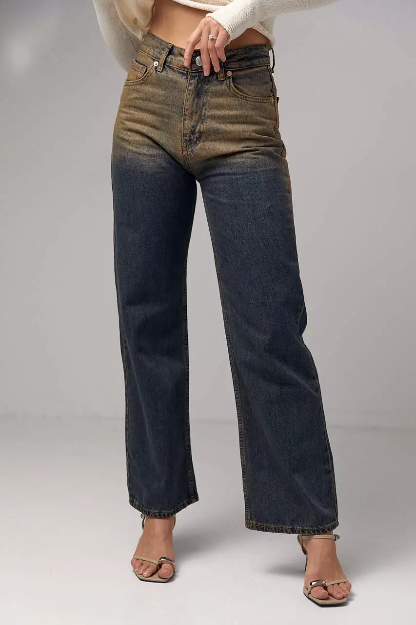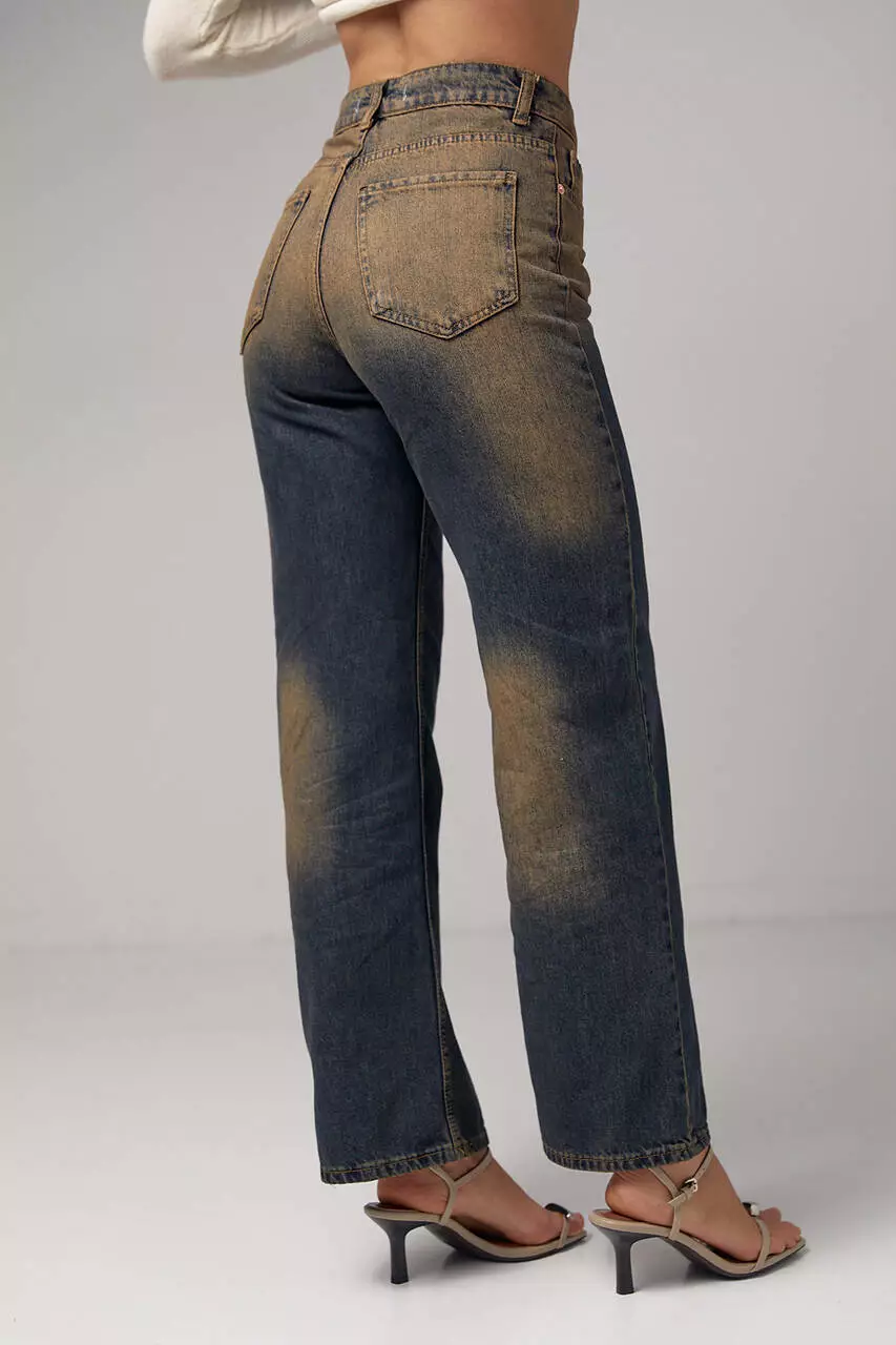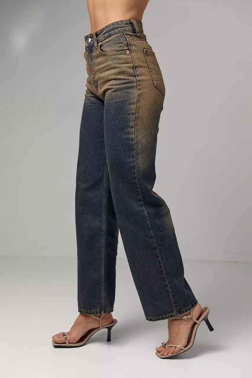 Женские джинсы прямого кроя с эффектом two-tone coloring - это стильный вариант одежды, который отличается особой двухцветной тканью. Этот эффект придает джинсам уникальный и современный вид.