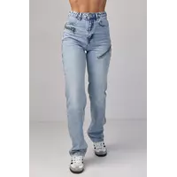 Женские джинсы с высокой посадкой - это стильный и удобный выбор для создания модного образа. Они обеспечивают хорошую посадку и комфорт, а также выгодно подчеркивают фигуру. Эта модель дополнена функциональными акцентами в виде молний, которые расположены в верхней части изделия.