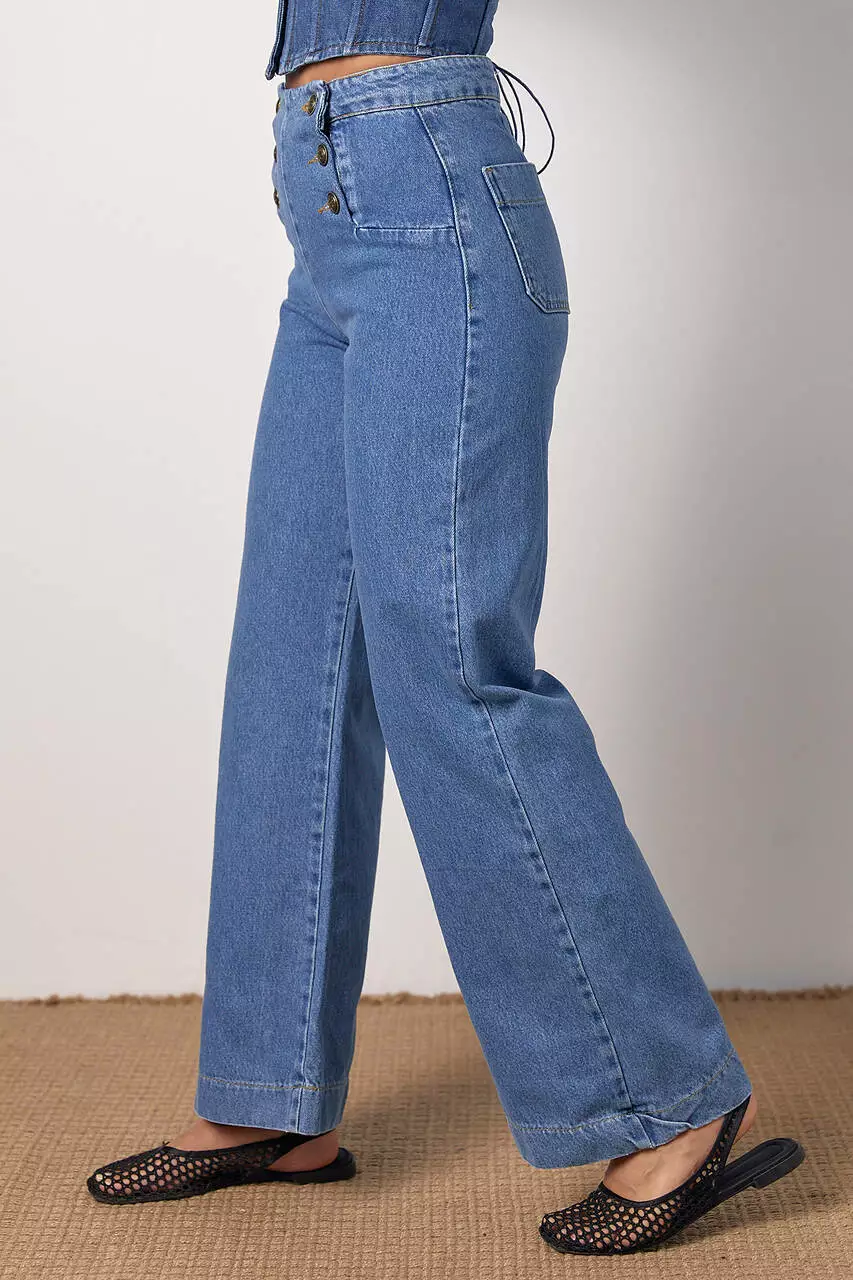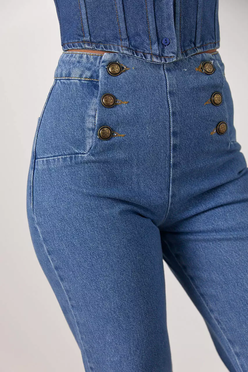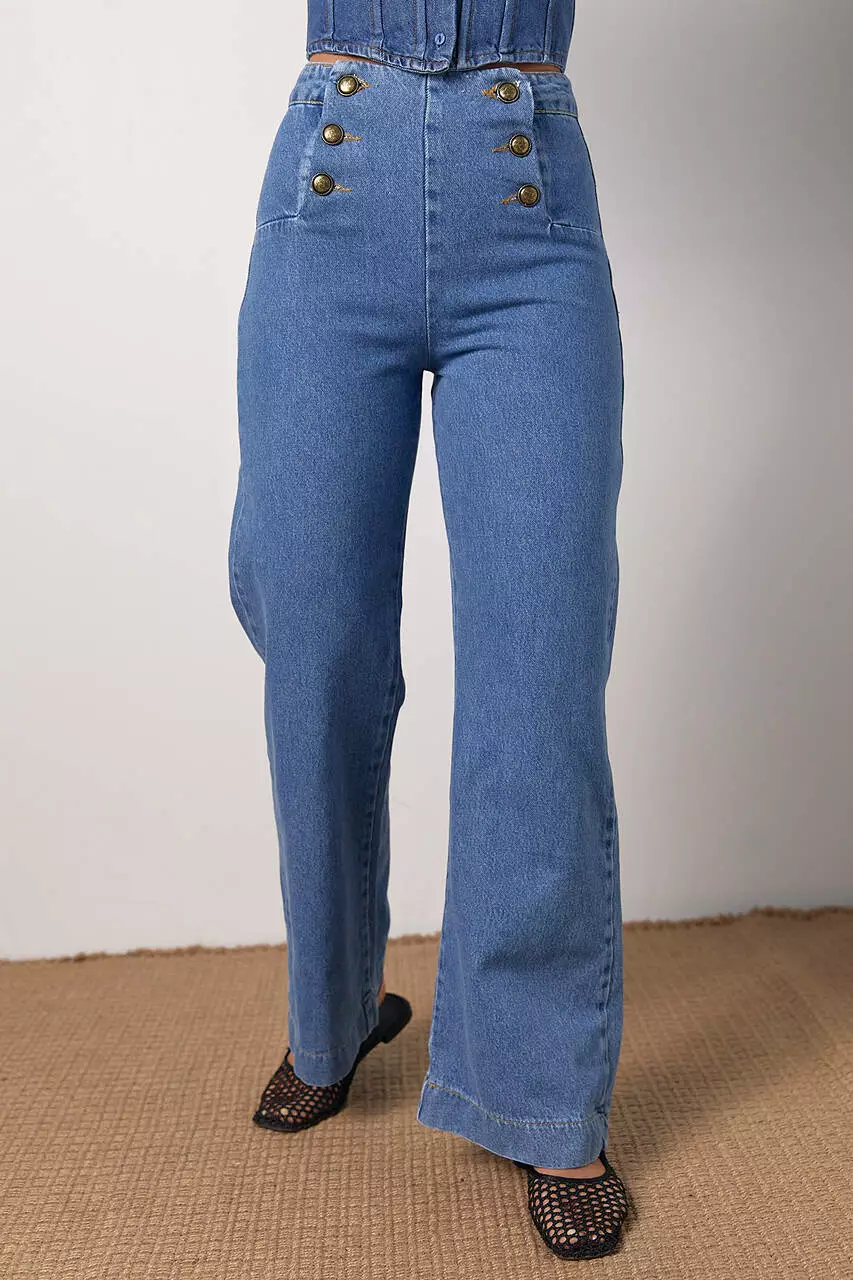 Наша новинка имеет прямой крой, высокую талию и двубортный