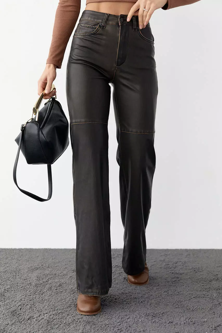 Женские кожаные штаны в винтажном стиле - коричневый цвет, 34р (есть размеры)